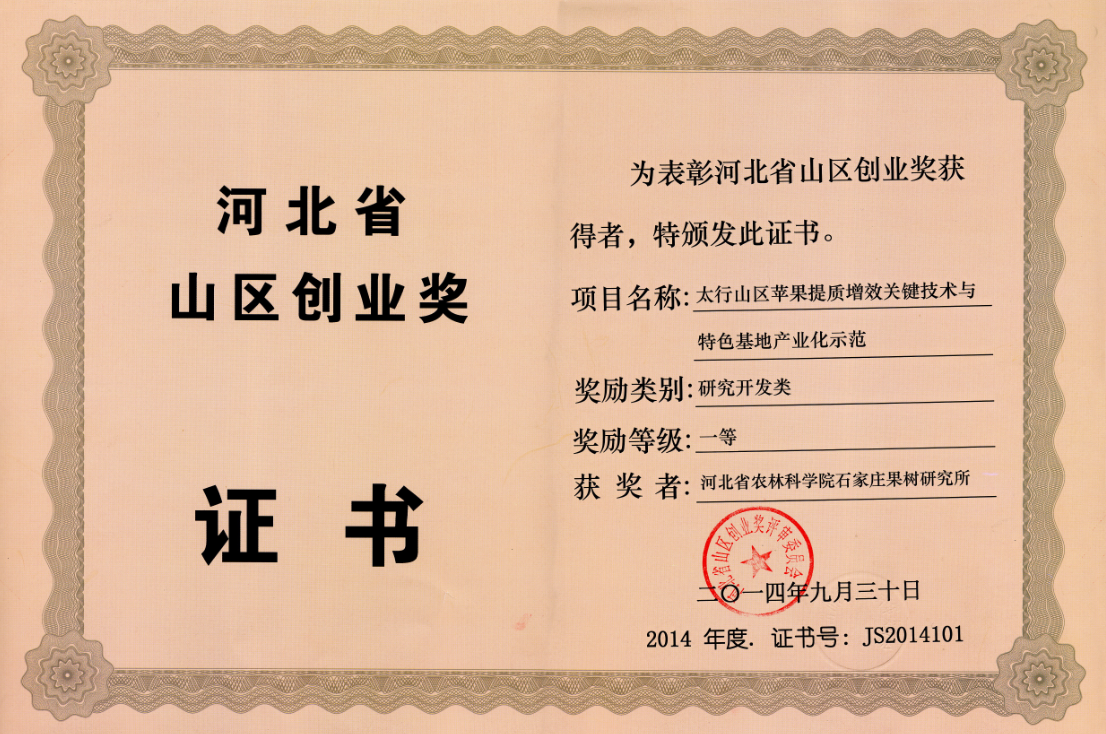 太行山區(qū)蘋果提質(zhì)增效關(guān)鍵技術(shù)與特色基地產(chǎn)業(yè)化示范