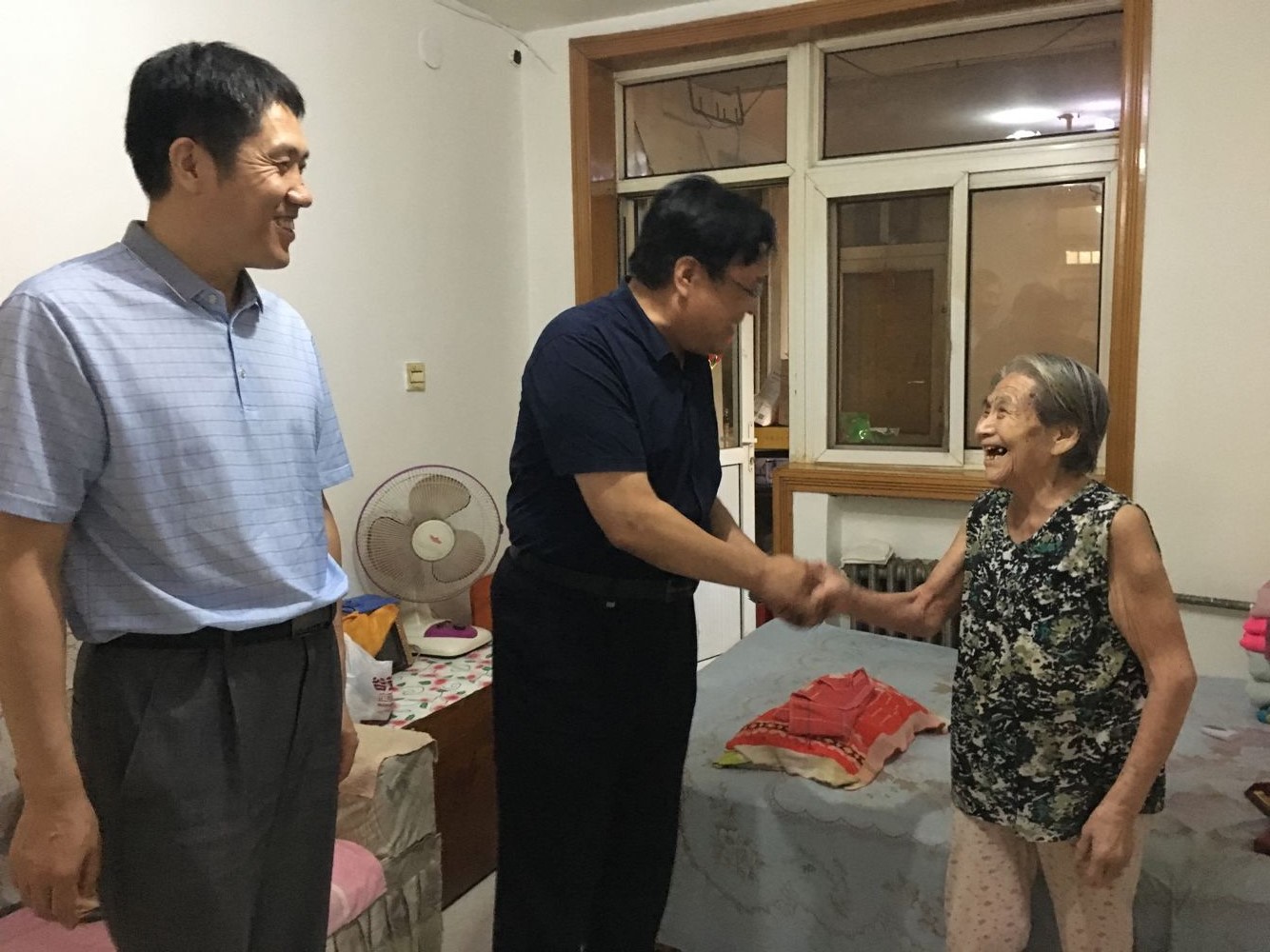 2019年9月30日上午,石果所總支書記、所長龐昭進和副書記賈建偉,副所長馮建忠和副書記褚鳳杰分別走訪慰問了離休老干部李素波和李喜福,困難干部劉建庫和離休干部遺屬李喜英,為他們送去了慰問品和慰問金,并與他們進行了座談,詢問了健康情況和生活狀況,希望多保重身體。老干部和困難干部由衷感謝黨和國家的關心和照顧,并借祖國70周年華誕之際,向祖國表達了深深祝福。