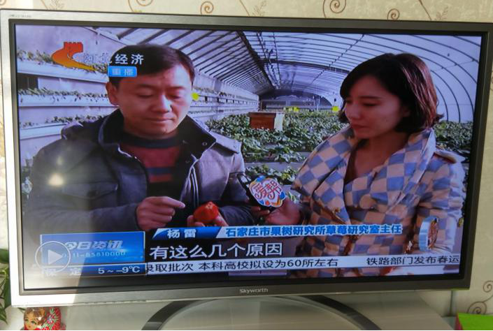 2019年2月26日河北日報以“草莓熟了,農民笑了”為題目,報道了河北省農科院石家莊果樹研究所與辛集建領果菜專業合作社聯合力促新品種試驗示范的成效。