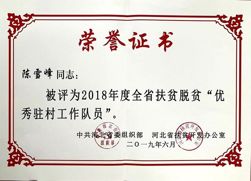 兩年間,他始終嚴格要求自己,積極克服家庭、工作、生活各方面困難,不忘領(lǐng)導(dǎo)的信任、不忘肩負的責(zé)任、更不忘村民的愿景,牢記使命,為脫貧攻堅貢獻自己的力量;積極發(fā)揮省農(nóng)科院的平臺優(yōu)勢,凝聚科技和社會力量,為補齊農(nóng)村人居環(huán)境短板,提升村莊整體面貌,加快農(nóng)業(yè)產(chǎn)業(yè)提質(zhì)增效,鞏固提升脫貧成效,做出了一定的貢獻,2019年6月被評為2018年度全省扶貧脫貧“優(yōu)秀駐村工作隊員”。