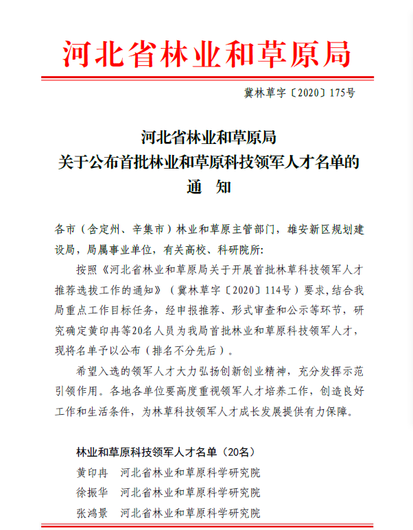石海強、郝婕兩位同志榮獲首批“林業和草原科技領軍人才”榮譽稱號。希望全所科技人才發揮創新精神,努力工作,爭當領軍人才。