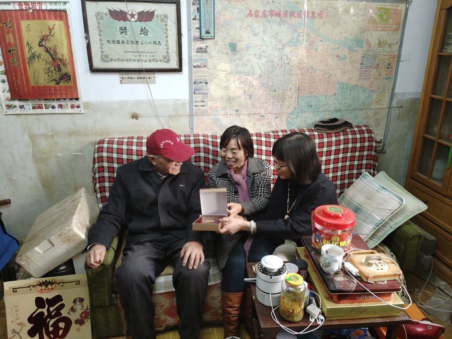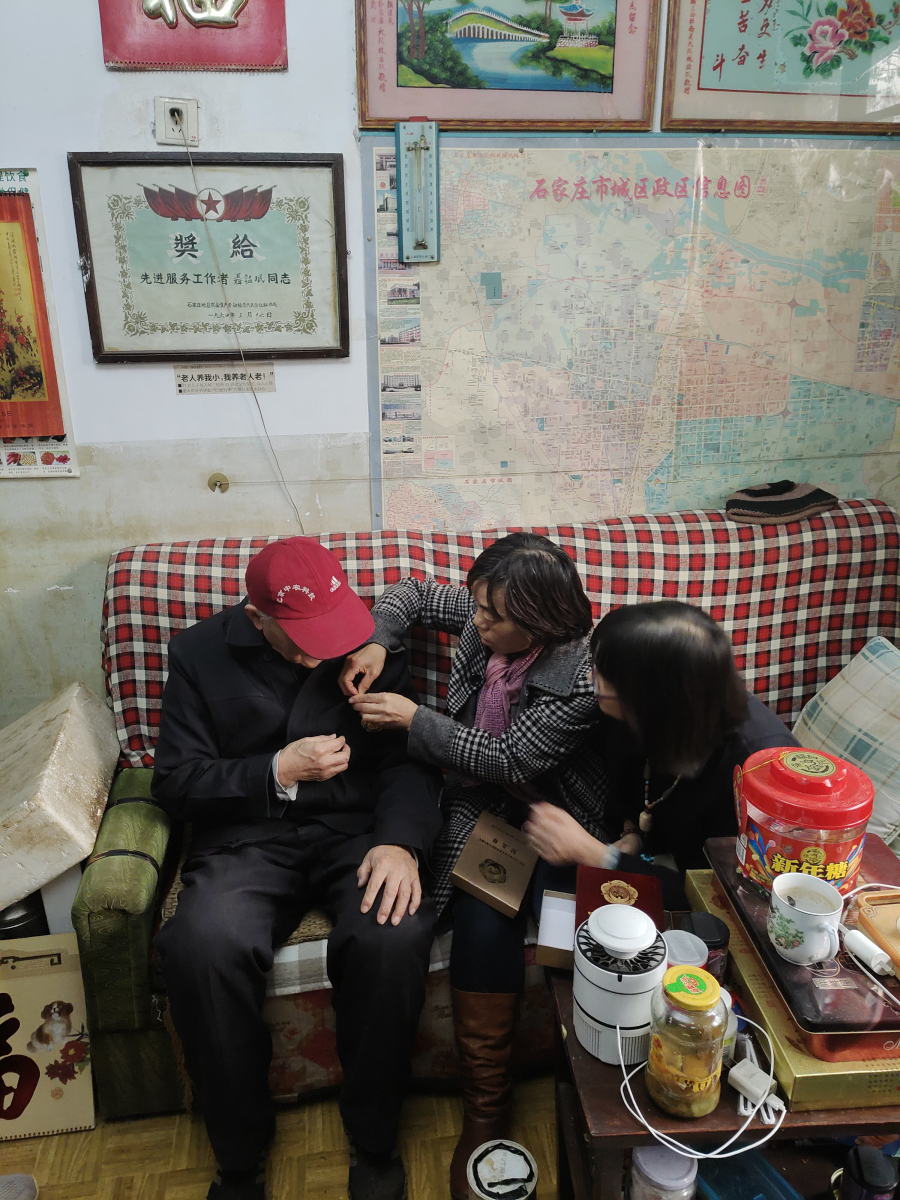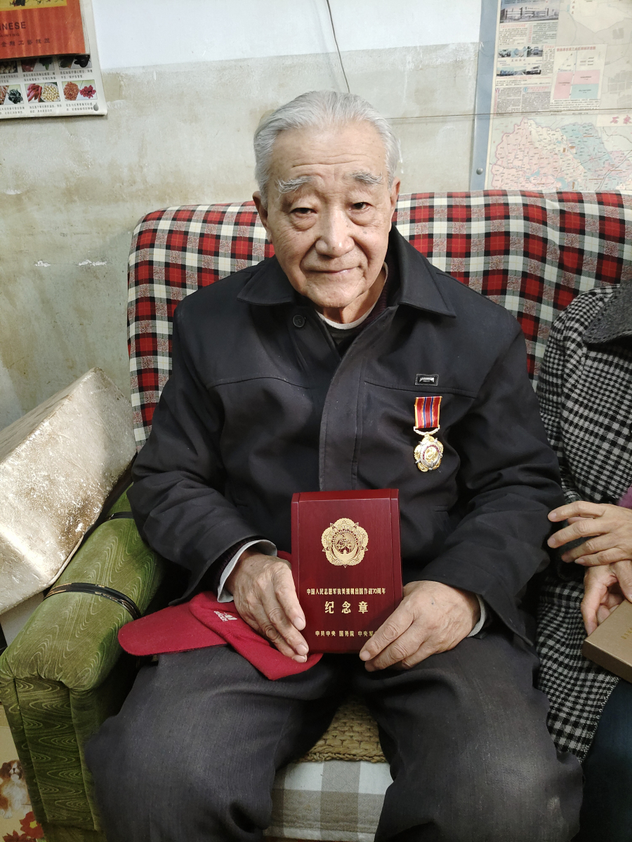 11月5日下午,在紀念中國人民志愿軍抗美援朝出國作戰70周年之際,我所走訪慰問了退休干部、抗美援朝老戰士-于潤生,為他佩戴由中共中央、國務院、中央軍委頒發的中國人民志愿軍抗美援朝出國作戰70周年紀念章。