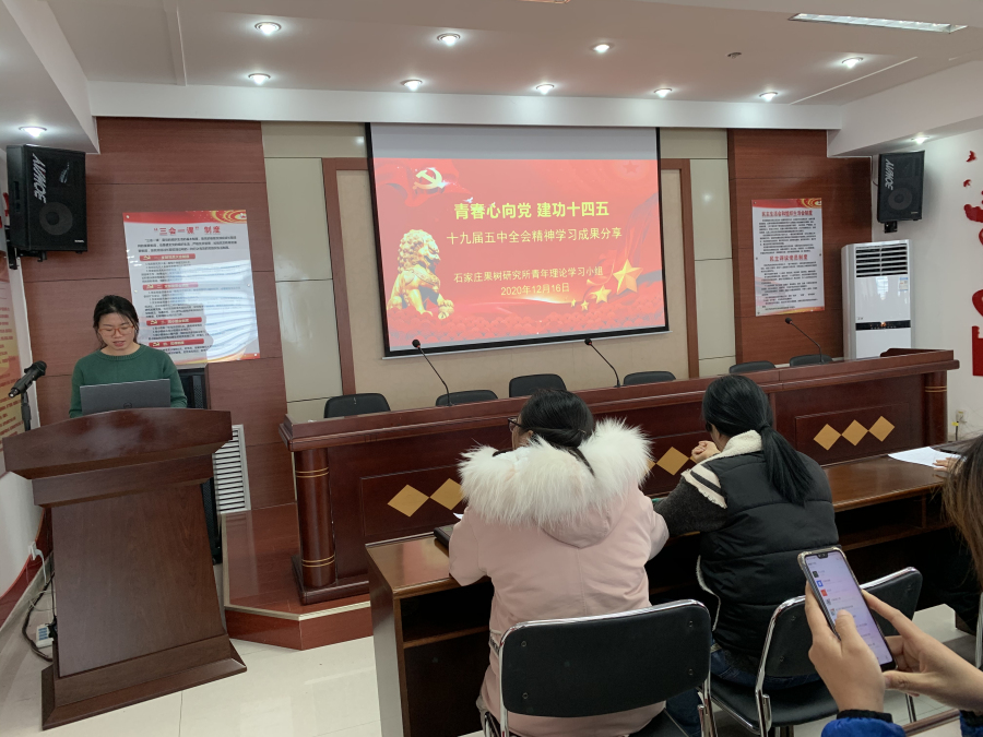 2020年12月16日下午,石家莊果樹所青年理論學習小組開展了“青春心向黨· 建功十四五”學習活動。青年黨員代表劉志琨為大家講述一堂題為“農(nóng)科青年守初心建新功”的微黨課,王玉姣、馬筱建、魏薇、牛早柱四位青年團員分別分享了學習十九屆五中全會精神的心得體會。