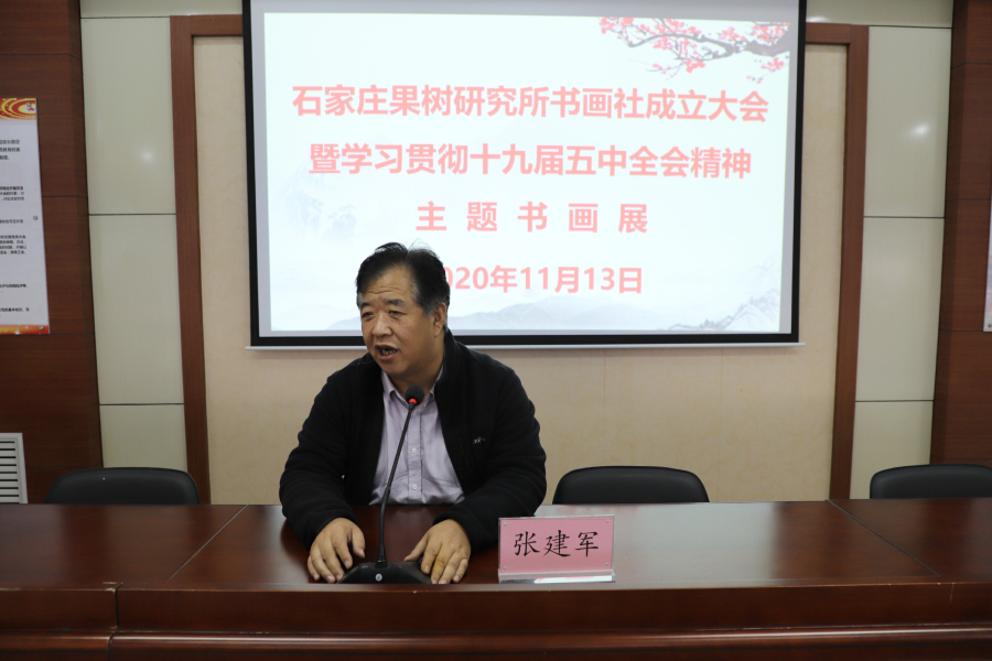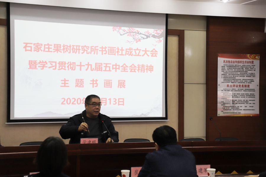 活動(dòng)首先由所長(zhǎng)龐昭進(jìn)致辭,對(duì)前來(lái)參加活動(dòng)的領(lǐng)導(dǎo)、同仁表示熱烈歡迎;他指出,書(shū)法、繪畫(huà)作為人類(lèi)文化瑰寶,通過(guò)學(xué)習(xí)、練習(xí)書(shū)法繪畫(huà)可以讓人在浮躁的現(xiàn)代社會(huì)中放松、調(diào)節(jié)心態(tài);同時(shí),成立書(shū)畫(huà)社也是我所弘揚(yáng)傳統(tǒng)文化、堅(jiān)定文化自信的具體體現(xiàn)。隨后書(shū)畫(huà)社社長(zhǎng)王迎濤作了發(fā)言,希望借助書(shū)畫(huà)社平臺(tái)提升我所職工對(duì)傳統(tǒng)文化的認(rèn)知與認(rèn)同感,讓更多的人參與到書(shū)畫(huà)活動(dòng)中,豐富文化生活,陶冶自身情操,提升綜合素質(zhì)。最后院神農(nóng)書(shū)畫(huà)社社長(zhǎng)、副院長(zhǎng)張建軍講話(huà),對(duì)貫徹學(xué)習(xí)黨的十九屆五中全會(huì)精神提出了明確要求,對(duì)該所開(kāi)展的文化活動(dòng)給予高度評(píng)價(jià),對(duì)書(shū)畫(huà)社的成立表示祝賀,并對(duì)書(shū)畫(huà)社發(fā)展提出指導(dǎo)意見(jiàn)。