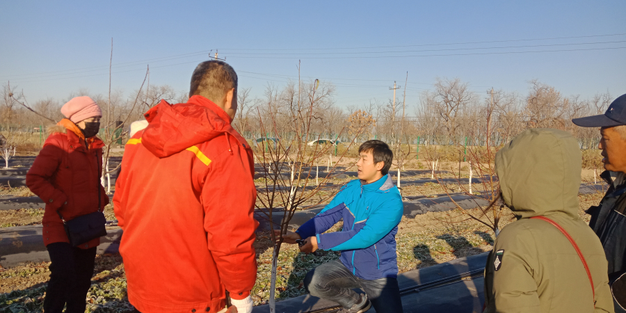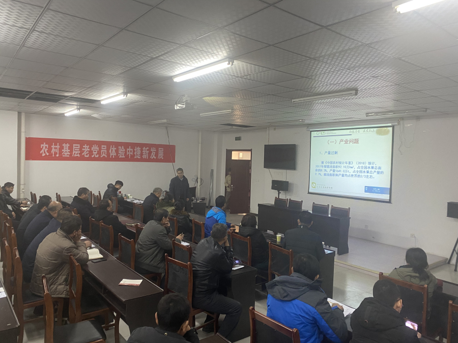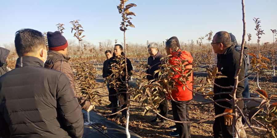 12月16日,梨專家李勇、蘋果專家徐國良、李杏專家武曉紅等以PPT形式進行了理論知識培訓,分別從新品種介紹、目前采用的樹形及樹形培養、病蟲草害防治、土肥水管理技術等方面進行了詳細講解。12月17日,到田間實地進行果樹冬剪技術指導,對蘋果樹、梨樹、桃樹、杏樹分別進行示范修剪,邊修剪邊講解技術要點以及來年樹體構建的要求及應注意的事項。