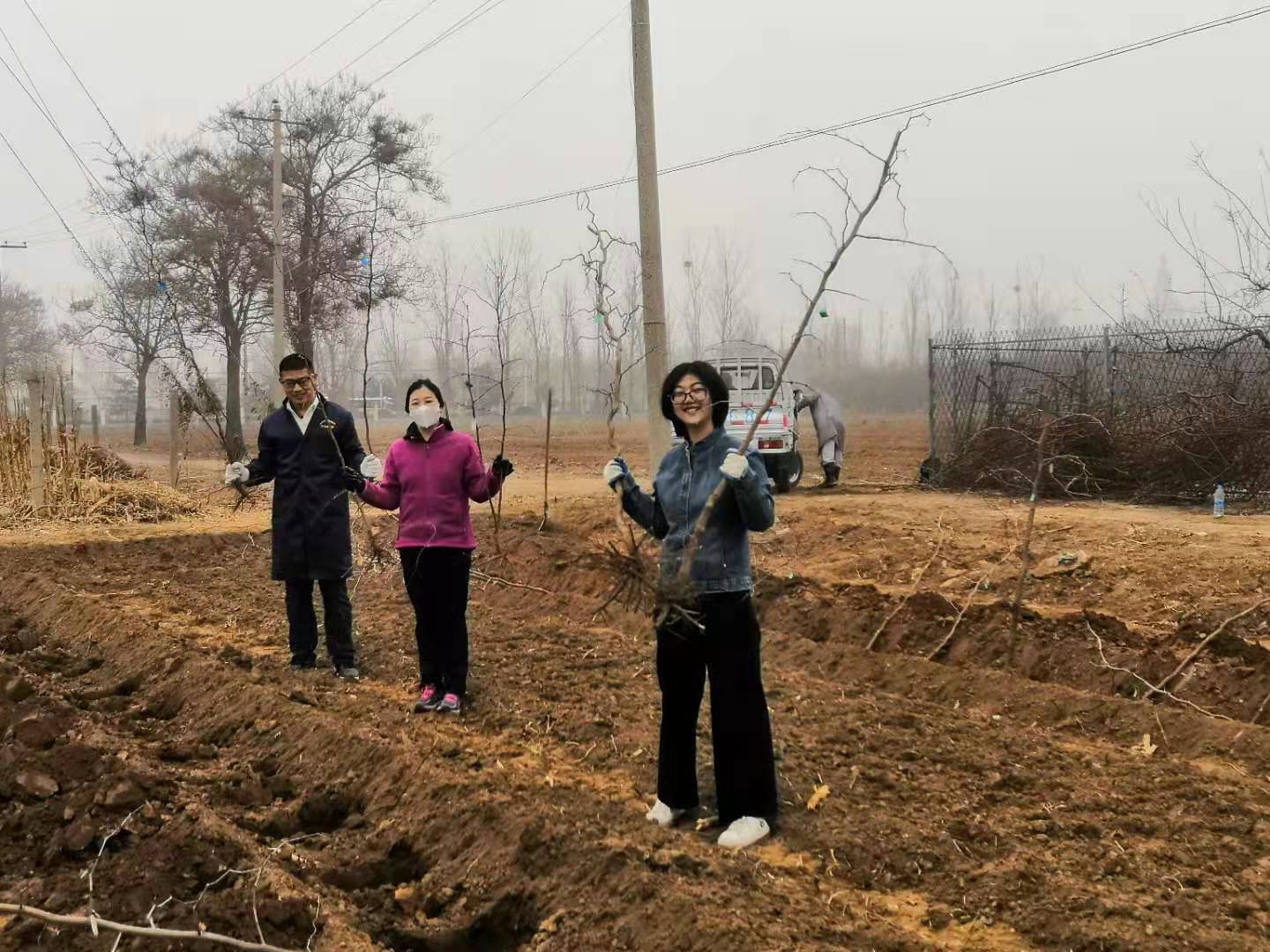 春日至,種樹忙。3月12日,干果研究室全體成員在前期整地劃線,挖定植穴的基礎上,于植樹節當天將上一年度培育的實生苗進行了移植定植。春栽一棵樹,秋收萬顆果。期待金秋十月的果園棗果飄香。