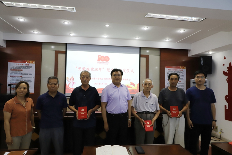 黨課結束后,所黨總支成員為“光榮在黨50年”的老黨員頒發紀念獎章。老黨員為黨工作一輩子,奉獻一輩子,此次紀念章的頒發讓他們感受到黨中央的關懷和褒揚。
