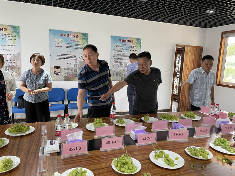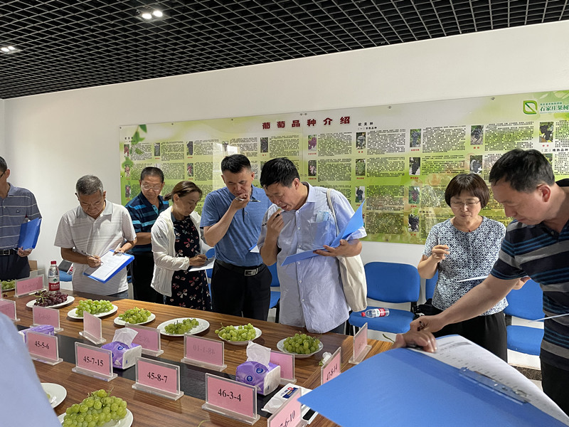 2021年7月2日,我所葡萄研究室召開葡萄早熟優(yōu)系品鑒會。會務組邀請中國農(nóng)學會葡萄分會會長劉俊,河北省林業(yè)與草原局種苗處金偉處長,河北農(nóng)業(yè)大學園藝學院杜國強教授及石家莊果樹研究所龐昭進所長、杜紀壯研究員、王迎濤研究員、馬之勝研究員等參加了鑒評。