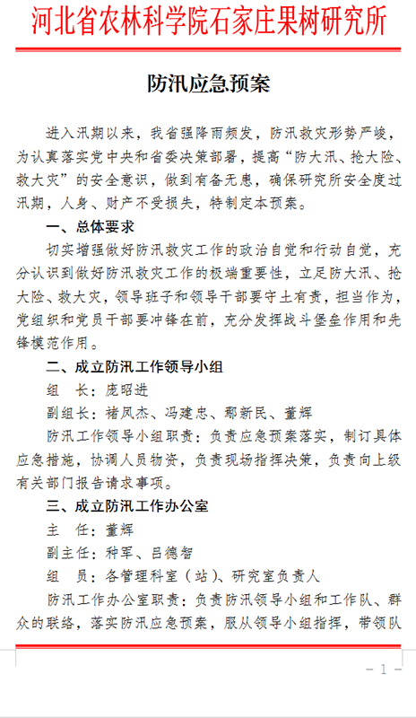 石家莊果樹研究所防汛應(yīng)急預(yù)案