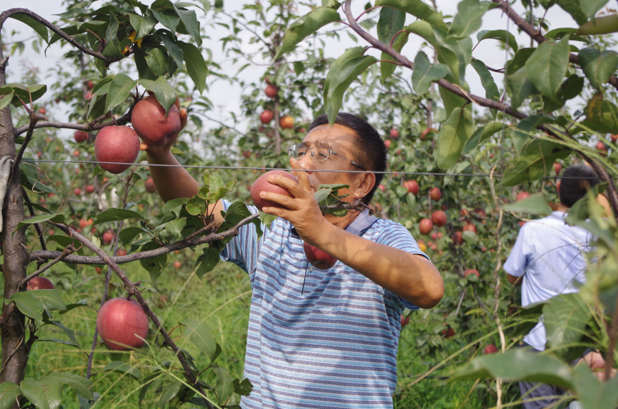檢測結果如下:1.項目引進了冀紅、石富短枝、冀艷等自育蘋果新品種,奧紅1號、早酥紅梨、紅香酥等梨新品種,對引進新品種的適應性、經濟性狀進行了系統評價,明確了區域適宜發展的新優品種。示范了矮化密植栽培技術、果園智能精準化肥水管理技術、果園生草技術、果園全程機械化生產模式等先進技術與適宜的果園裝備。2.建立了高標準紅梨示范園4000畝,蘋果園1000畝。試驗示范園園貌整齊,樹勢中庸健壯,技術措施得當,管理先進。3.示范區3年生奧紅1號紅梨平均單果重366.3克,可溶性固形物含量11.0%,畝產優質果1443千克,優質果率顯著提高,達到了92%。