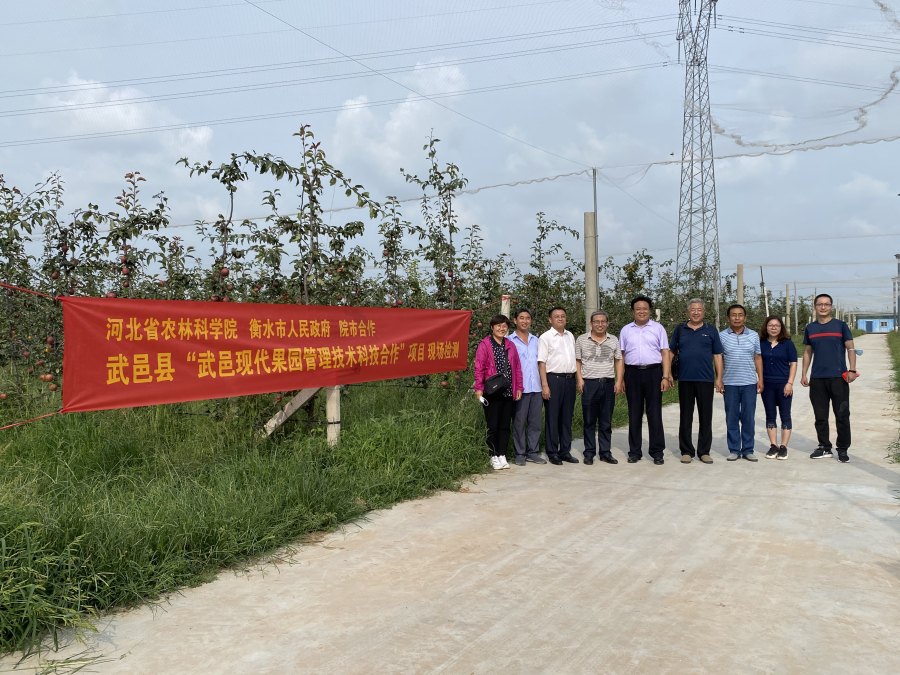 2021年8月21日,河北省農林科學院與衡水市農業農村局共同組織邀請有關專家組成田間檢測組,對我所承擔的河北省農林科學院與衡水市人民政府科技合作項目“武邑現代果園管理技術科技合作”實施效果進行了田間檢測。專家組聽取了項目組工作匯報,進行了現場檢測