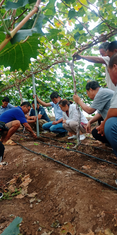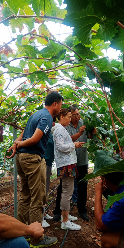 我所葡萄研究室專家、院市合作項目組負責人褚鳳杰研究員,同饒陽縣農業農村局副局長張旭光、技術站站長張鐵兵、科教站站長耿青松以及葡萄技術骨干等十余人,于2021年8月26至27日前往饒陽縣官廳鎮王崗村衡健農業科技有限公司;尹村鎮北流滿村郝威葡萄園、尹村鎮高村葡萄;留楚鎮東崔村帥佳家庭農場;留楚鄉影林村的新饒農業公司;五公鎮南馬村甄云飛葡萄園;同岳鎮小康農業科技有限公司葡萄園、同岳鎮康氏農業科技有限公司等十余個葡萄種植園,針對設施葡萄生長存在問題,進行現場調研與技術指導,并為果農解答各類疑難問題。