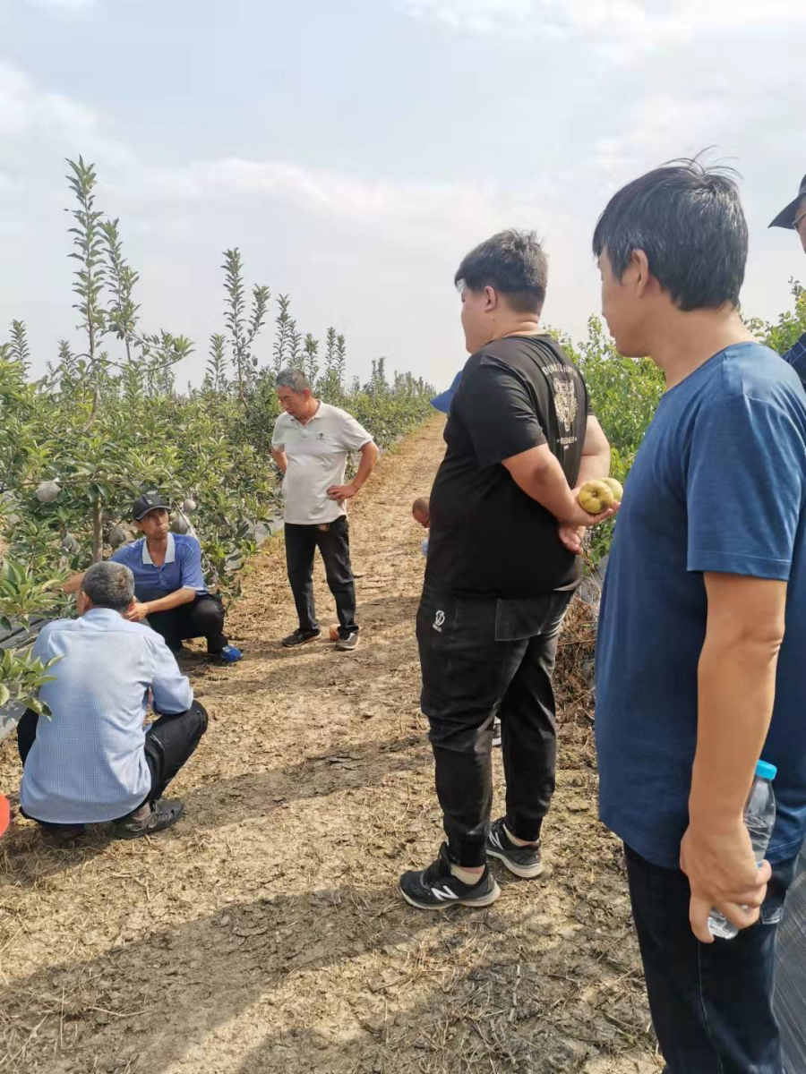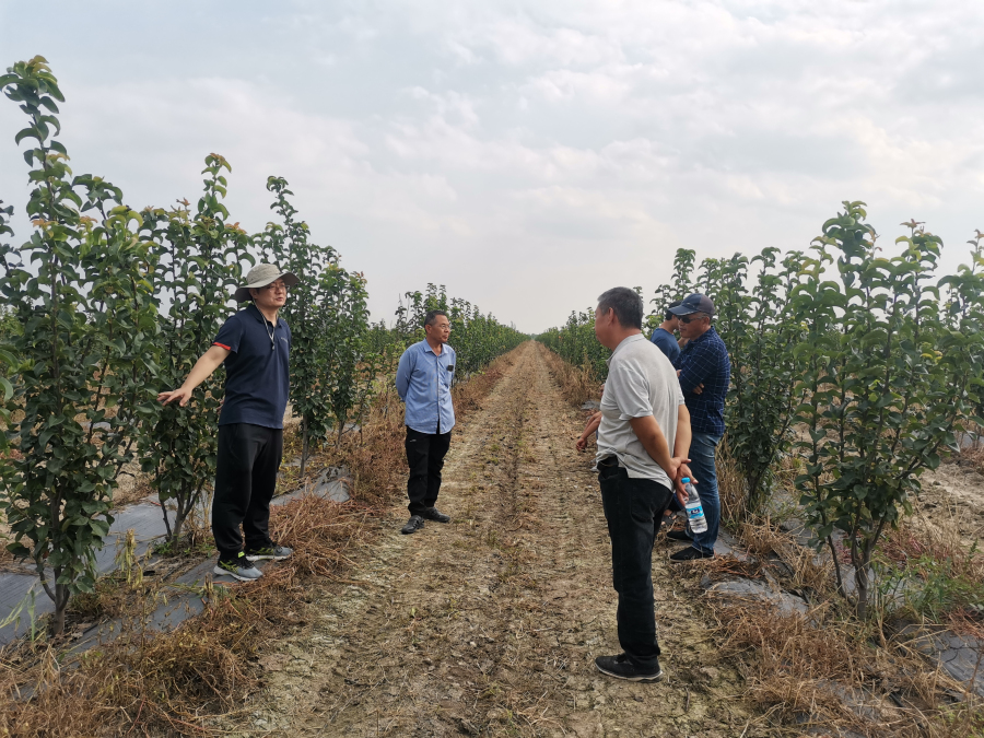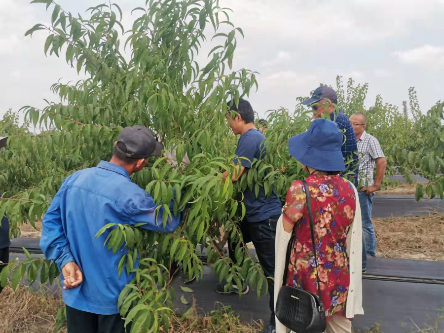 褚鳳杰研究員一行在逐一查看了桃、櫻桃、杏、蘋果、梨等果園及種苗圃生長(zhǎng)狀況后,針對(duì)現(xiàn)階段存在的問題,王越輝副研究員對(duì)桃的管理技術(shù)進(jìn)行了現(xiàn)場(chǎng)指導(dǎo);王永博博士就密植梨架式構(gòu)建及相應(yīng)整形技術(shù)進(jìn)行了指導(dǎo);徐國(guó)良研究員就櫻桃和蘋果下一步關(guān)于水肥、病蟲防控等管理工作提出可行性建議;基地負(fù)責(zé)人采納了褚鳳杰研究員、王景濤副研究員就種苗圃嫁接品種、嫁接時(shí)間提出的意見建議。