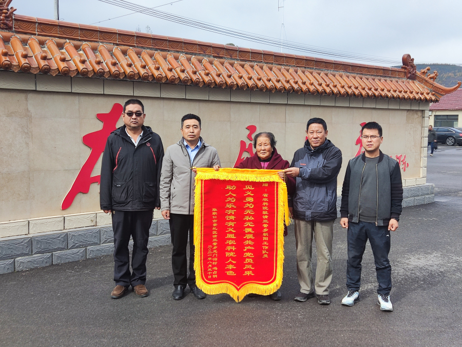2021年10月13日,龍門溝村民馮占明年近80歲的老伴,把寫有“見義勇為無私無畏展共產(chǎn)黨員風(fēng)采,助人為樂有情有義顯農(nóng)科院人本色”的錦旗送到清三營鄉(xiāng)政府,誠心表達(dá)對省農(nóng)科院駐朝陽村工作隊(duì)隊(duì)員見義勇為救助遭遇車禍的馮占明老漢感人事跡的感激之情。