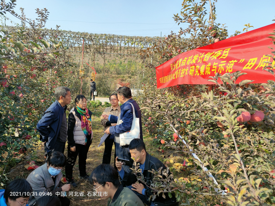 2021年10月31日,蘋果栽培研究室楊素苗博士承擔的河北省科技廳重點研發專項“蘋果園智能精準水肥管理技術研究集成與示范”在鹿泉大桓淵果園進行了專家現場檢測。