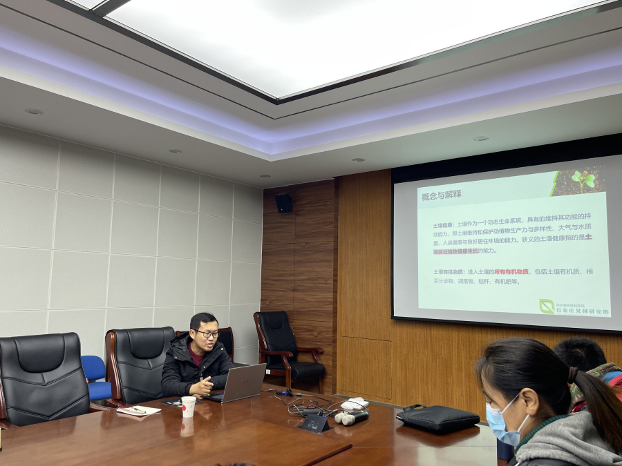 首先,梨研究室王晉博士分享解讀了“土壤有機物質與土壤健康關系的研究進展”、草莓研究室馮佳博士分享解讀了“LAM基因調控草莓匍匐莖形成的功能研究”2篇高水平學術論文。通過兩位博士的分享與解讀,科研人員對學術前沿動態、研究思路、先進的研究方法有了進一步的認識。之后,按照上級黨組織要求,青委會主任陳雪峰領學了十九屆六中全會精神。