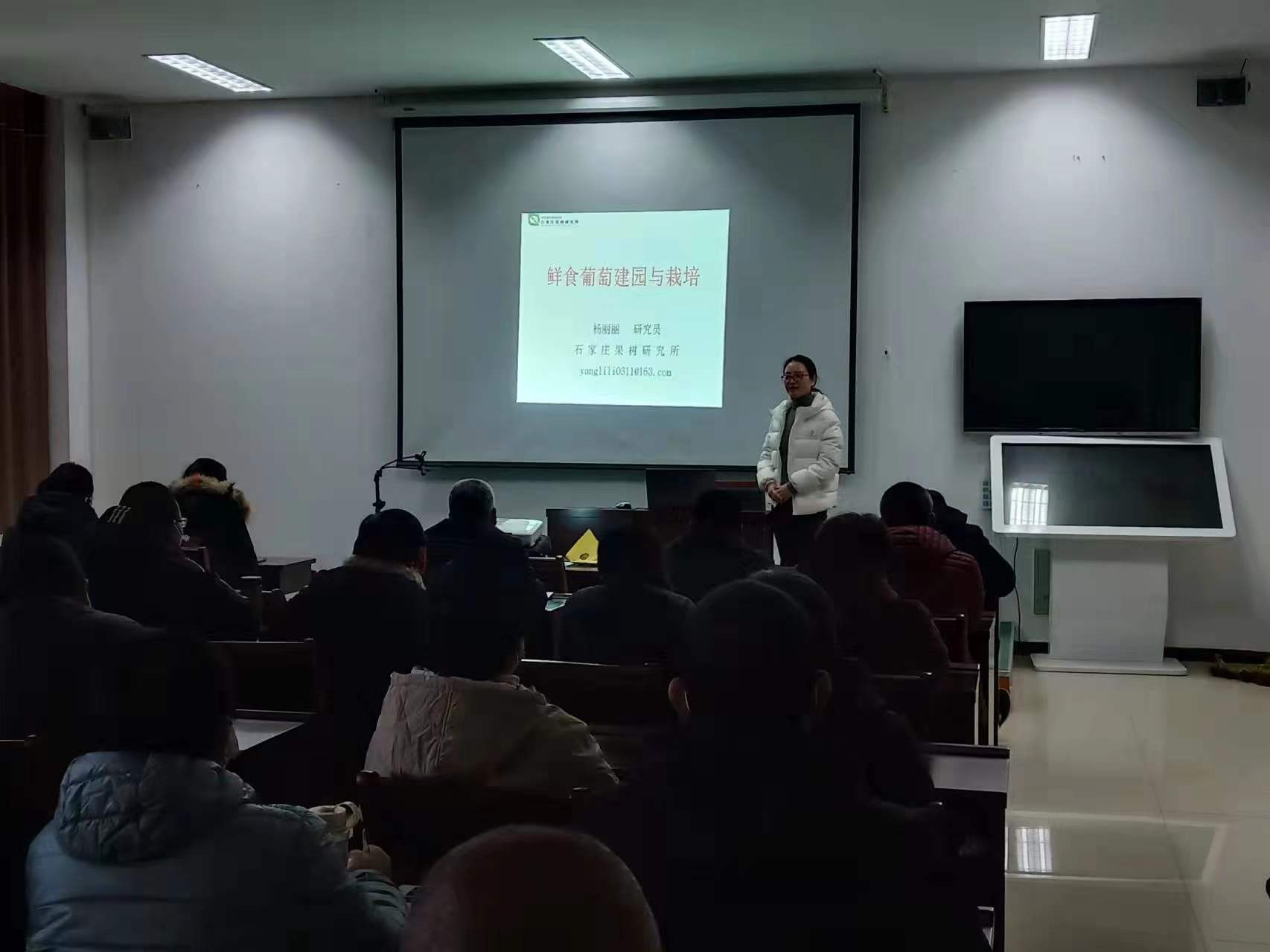 2021年12月至12日、17日、20日,我所葡萄研究室主任楊麗麗研究員,褚鳳杰研究員分別到蒿城農(nóng)業(yè)高科技園區(qū)、深澤農(nóng)廣校、饒陽農(nóng)業(yè)農(nóng)村局,圍繞“葡萄節(jié)本綠色優(yōu)質(zhì)栽培”“葡萄輕減化設(shè)施栽培技術(shù)”“葡萄病蟲害綜合防控”等葡萄管理的核心技術(shù)進行系列現(xiàn)場指導和技術(shù)培訓。