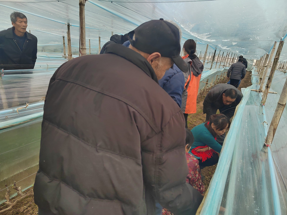 2022年2月11日,葡萄專家褚鳳杰研究員帶隊(duì)赴深澤縣小直要村,針對(duì)當(dāng)?shù)毓r(nóng)關(guān)心的設(shè)施葡萄萌芽期如何科學(xué)管控問題進(jìn)行了技術(shù)指導(dǎo)。