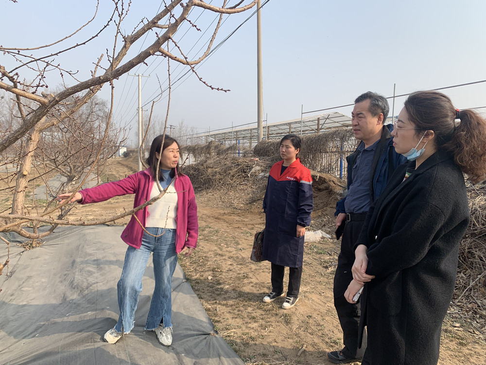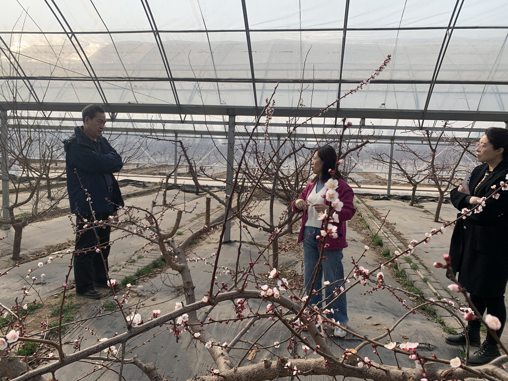 李杏研究室武曉紅主任帶領工作隊參觀了我所李杏資源圃。資源圃保存了國內外包括鮮食、加工和仁用品種在內的優良品種100多份資源。武主任介紹了李杏資源圃概況,并帶隊參觀了我所塑料大棚,重點介紹了棚內我所自育品種‘金荷’和‘冀早紅’。駐村第一書記郭建華處長介紹了土窯溝村氣候、土地及農民原有種植農產品情況。針對該村具體情況,制定了引種計劃。