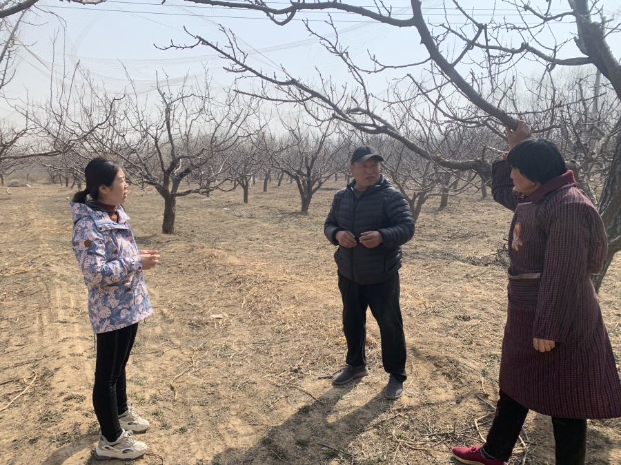 隨后,團隊又來到巨鹿縣杜泰農業公司,該公司種植杏樹新品種300多畝,主要包括石家莊果樹研究所自育新品種‘金荷’、‘冀早紅’,已作為石家莊果樹研究所新品種新技術示范基地。武曉紅主任講解了春季果園管理的關鍵技術,同時布置了新品系6-17的生產區域試驗。
