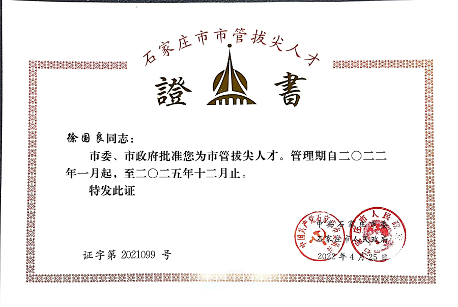 近日,中共石家莊市委辦公室、石家莊市人民政府辦公室印發《2021年度石家莊市市管關于印發拔尖人才名單》通知(石辦字〔2022〕12號),植物保護研究室顧問徐國良研究員入選石家莊市2021年度市管拔尖人才,管理服務期為2022年1月至2025年12月。