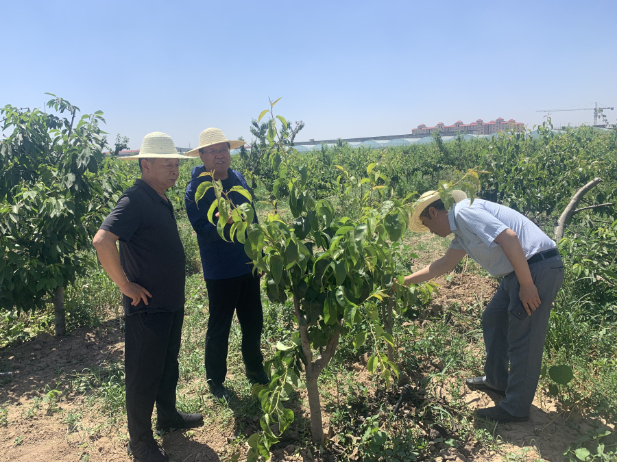 為深入推進河北省農林科學院關于農業科技現代化先行縣合作共建工作安排部署,2022年6月5日,我所梨專家團隊赴寧晉縣調研‘冀秀’梨成果轉化種苗繁育情況。