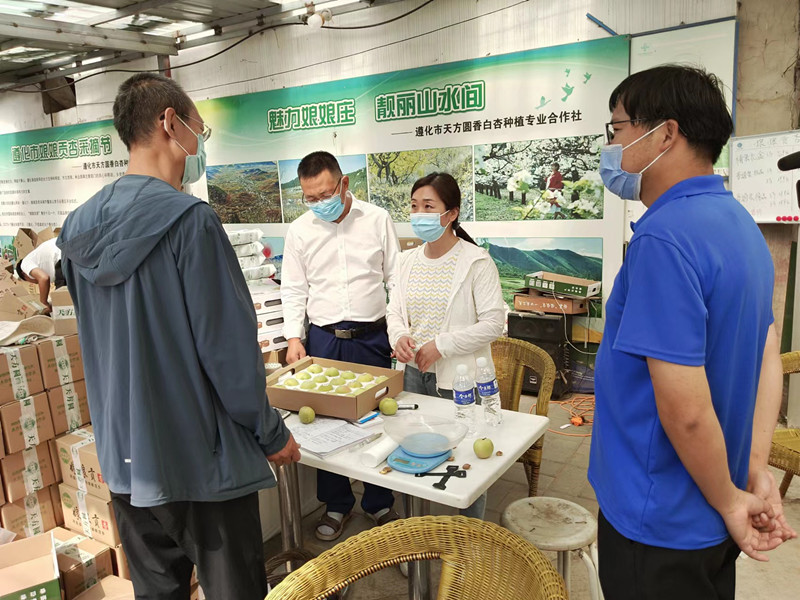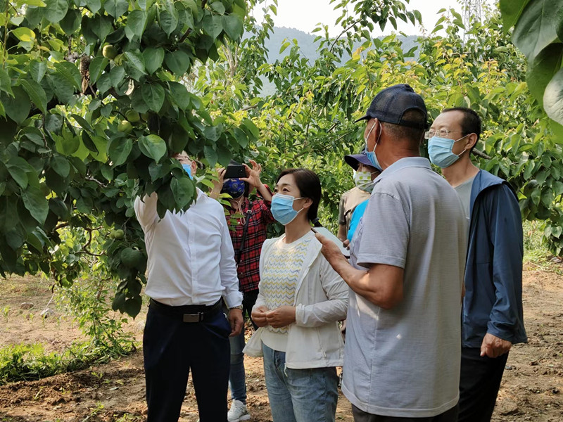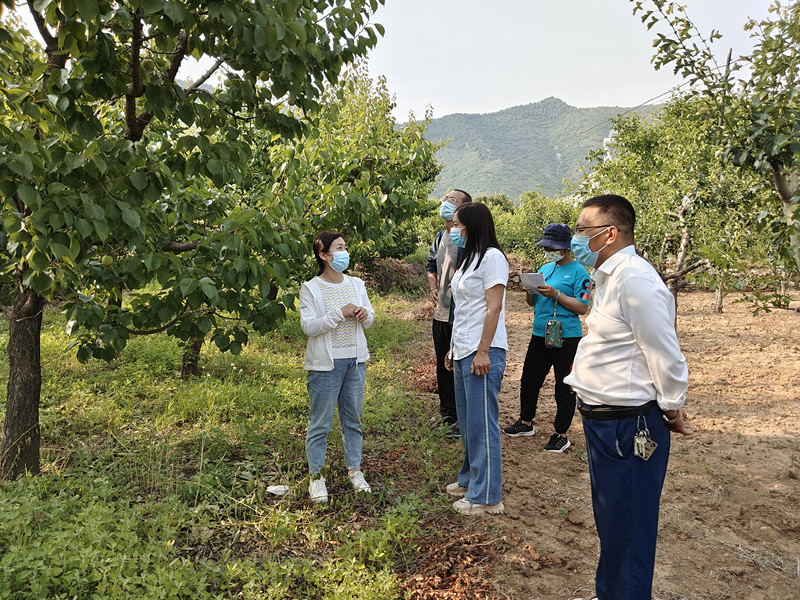 專家一行實地走訪了遵化市天方圓香白杏種植專業合作社基地,了解了當地果品生產、銷售現狀,重點調研了香白品種選育、花果管理、病蟲害防治狀況及產業發展難題。理事長才秀東介紹稱今年香白杏售價為8~15元/斤,價格較為平穩。合作社正在抓緊收購,線上線下同步銷售,助力果農增收。目前當地杏產業發展面臨兩大難題,一是6月初遭遇冰雹惡劣天氣,部分香白杏外觀受到影響,無法銷售,急需開發深加工產品;二是香白杏遇雨易裂果,這一果品特性對銷售收益影響巨大。武曉紅專家表示開發深加工產品是提高果品收益的重要途徑,將協助合作社與加工企業對接,開發凍干、速凍果粒、杏漿等產品;針對香白杏易裂果的特性,還需從品種改良入手,從當地香白群體中優選不易裂果的單株,擴繁后經多點試驗,選育出抗裂品種。