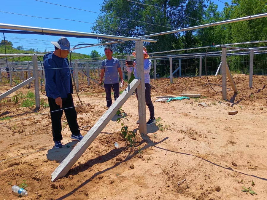 6月24日,我所專家團隊赴行唐縣口頭鎮西寺莊村軟棗獼猴桃示范基地及口頭鎮東寺莊獼猴桃廊架栽培實驗基地進行調研指導。專家一行查看東寺莊廊架栽培基地,現場為當地種植戶講解了廊架栽培技術要點及夏季修剪技術要領;在西寺莊村軟棗獼猴桃基地,為提高幼苗成活率,向果農講解了生草保墑,高噴降溫等栽培管理措施,當地果農受益匪淺。