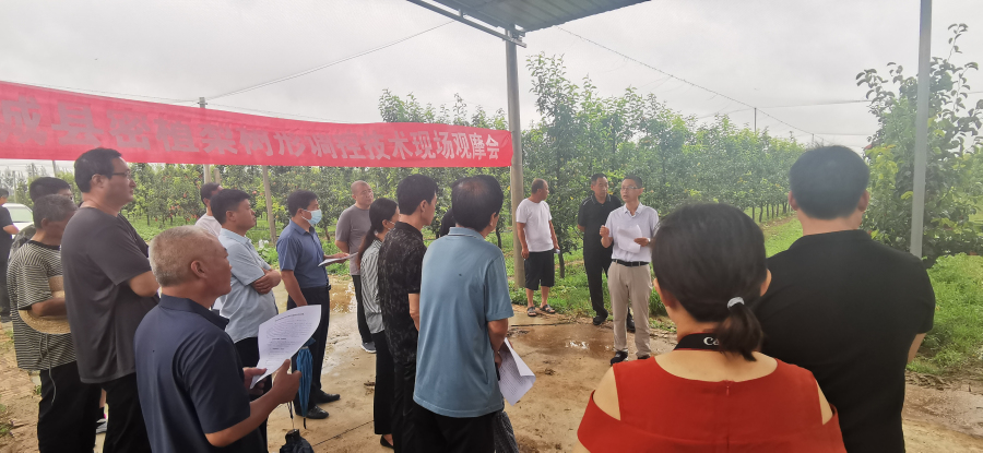 2022年7月6日,我所院市合作“阜城縣特色梨提質(zhì)增效技術(shù)示范”項(xiàng)目團(tuán)隊(duì)在阜城縣召開(kāi)了“密植梨樹(shù)形調(diào)控技術(shù)現(xiàn)場(chǎng)觀摩會(huì)”。