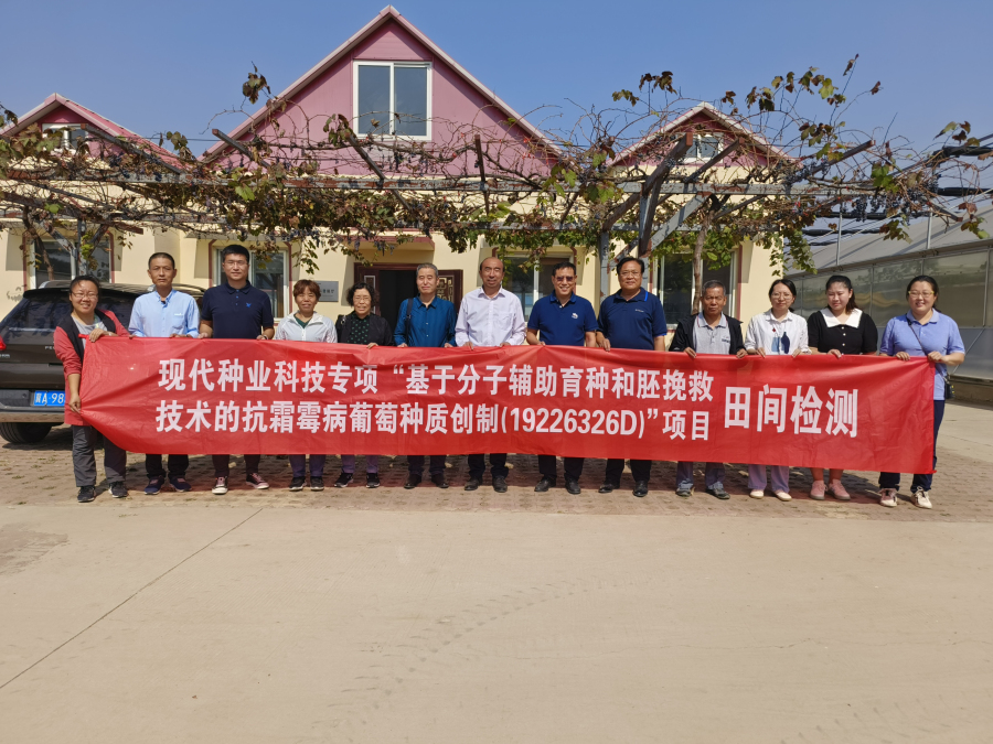 2022年9月29日,河北省科學(xué)技術(shù)廳組織邀請(qǐng)河北省林業(yè)和草原科學(xué)研究院、河北省農(nóng)林科學(xué)院資源與環(huán)境科學(xué)研究所、河北省植保植檢總站相關(guān)專家組成田間檢測(cè)組,對(duì)我所承擔(dān)的河北省科技廳現(xiàn)代種業(yè)科技專項(xiàng)課題“基于分子輔助育種和胚挽救技術(shù)的抗霜霉病葡萄種質(zhì)創(chuàng)制”(19226326D)實(shí)施效果進(jìn)行了田間檢測(cè)。