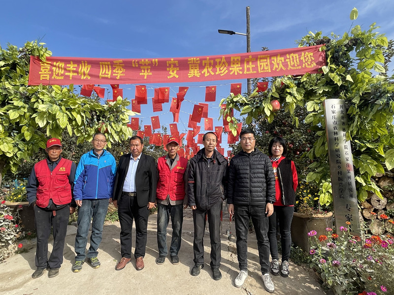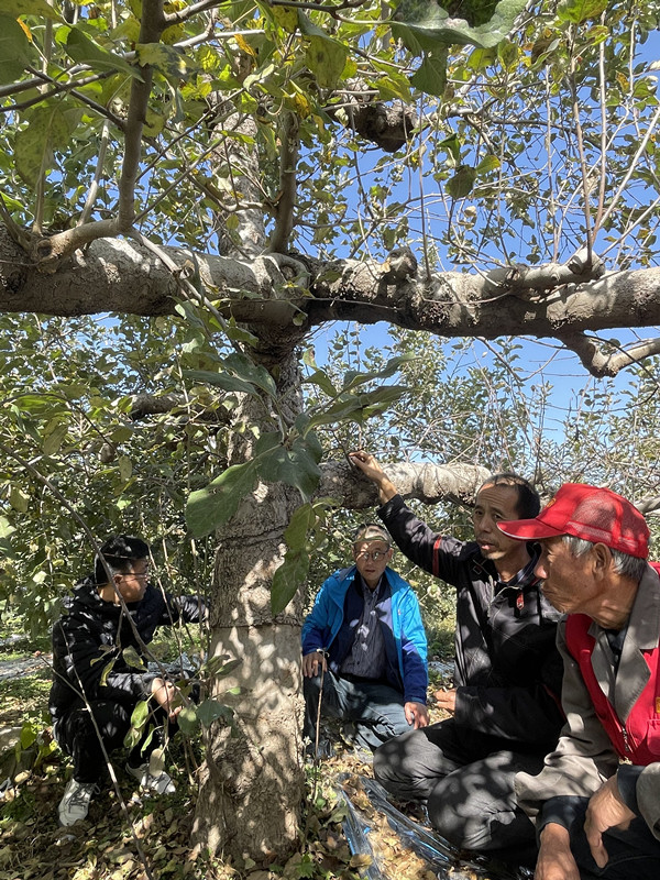 2022年10月31日,植保研究室徐國良研究員同董輝副所長、馬文會研究員等共同前往井陘縣洛陽村冀農珍果莊園,圍繞“果實采摘和貯藏”“秋季增施基肥”“冬季越冬防寒”等當前管理核心問題對莊園蘋果園進行了現場指導,并就明年進一步提升蘋果品質提出了計劃安排。