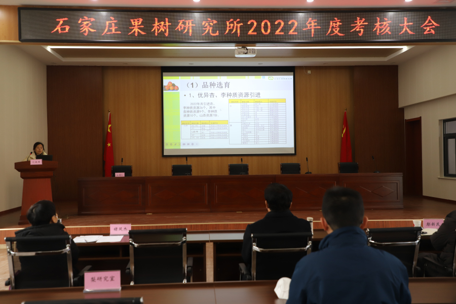所長龐昭進在發言時表示,2022年度,石家莊果樹研究所科技創新工作的“四梁八柱”已經建成,具備跨越發展的條件;成果轉化取得新突破,擴大了研究所的社會知名度和影響力;基礎研究邁上新臺階,成功申報了國家自然科學基金與省自然科學基金項目;人才引進、人才培養工作持續發力;工作環境不斷優化,營造健康向上的工作氛圍。2023年,石家莊果樹研究所領導班子將繼續在院黨組的正確領導下,與時俱進,加強自身建設,帶領全體石果所人團結一致,聚焦主業,奮力譜寫事業發展新篇章!