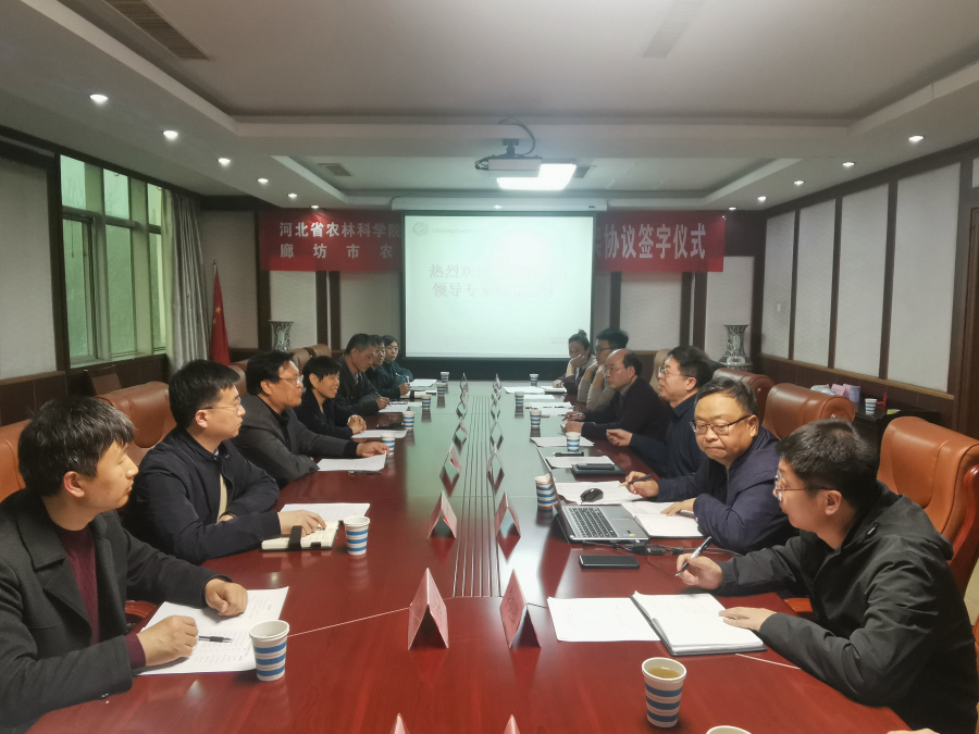 為充分發(fā)揮科技對(duì)農(nóng)業(yè)的支撐作用,加強(qiáng)科研院所技術(shù)、人才、項(xiàng)目等方面的深入合作,2023年3月5日,我所與廊坊市農(nóng)林科學(xué)院簽訂了科技合作框架協(xié)議。簽約儀式后雙方就合作領(lǐng)域開展了深入交流討論。
