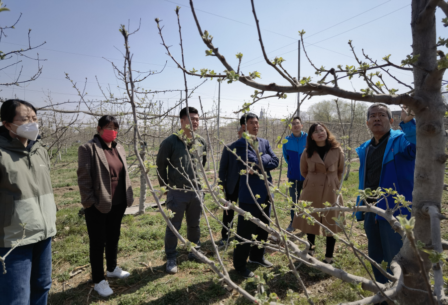 馮建忠副所長對張雪飛總經理及團隊成員的到來表示歡迎,表示愿意繼續為企業在技術上提供支持,在生產及管理上解困紓難。此次座談交流緊緊圍繞春季開花前蘋果樹體管理、化學疏花、肥水補給、病蟲害防控等生產內容進行了深入探討。李學營研究員對企業技術人員提出的各項問題進行了認真解答,結合當地自然環境氣候,因地制宜制定了修剪、拉枝、疏花、疏果、套袋等樹體生長管理技術方案,并根據樹體生長狀況,制定了針對性的化學防控方案。