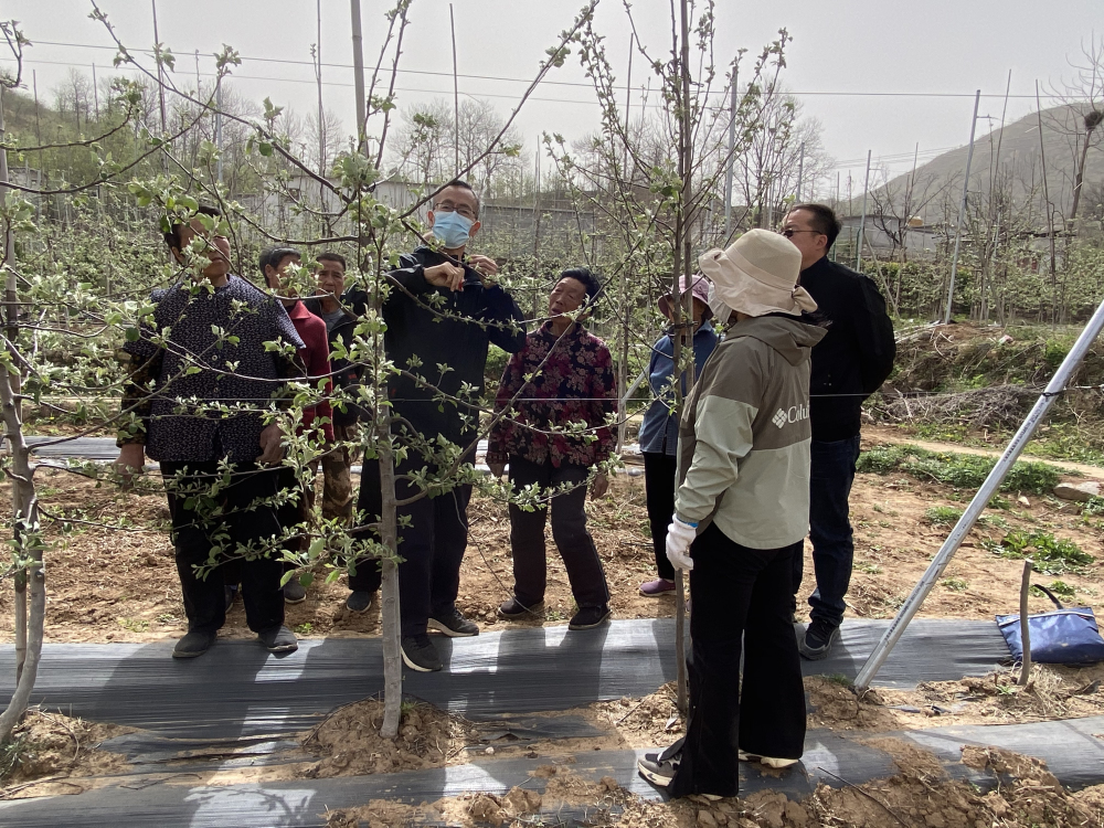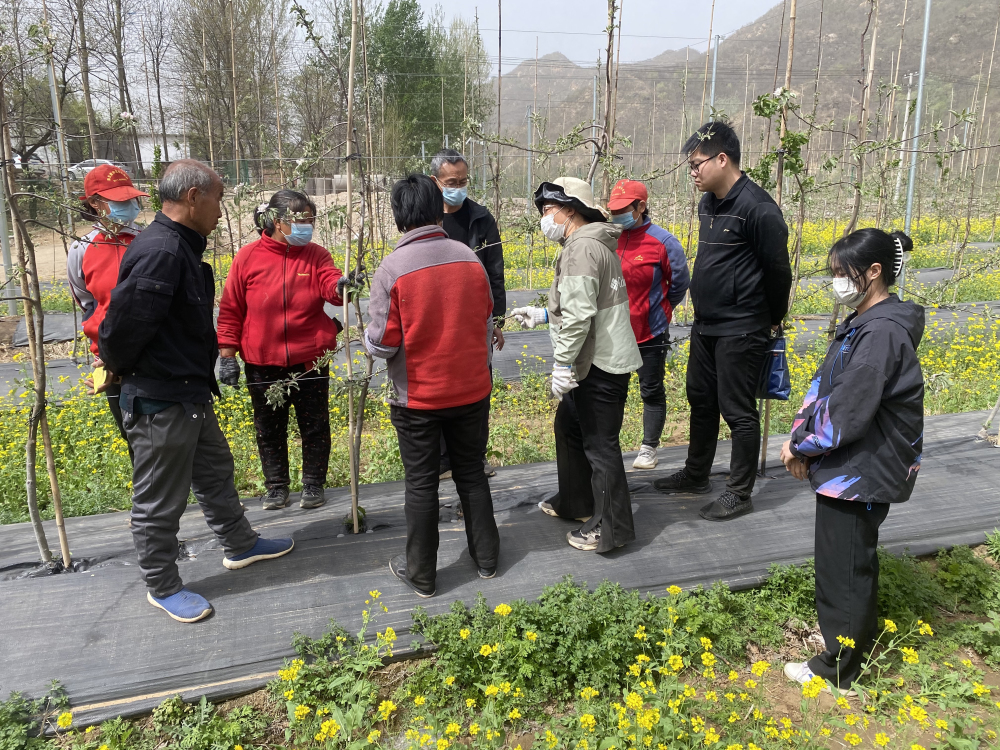 2023年4月11日,蘋果栽培團隊到河北名沁農(nóng)林科技有限公司南坪村和下灘村基地開展蘋果幼樹春管關鍵技術指導。團隊成員首先查看了幼樹成花情況,對基地工作人員進行了幼樹促枝及肥水管理技術培訓。同時就下一步園區(qū)肥料施用種類、量及水肥一體化技術進行了安排部署。