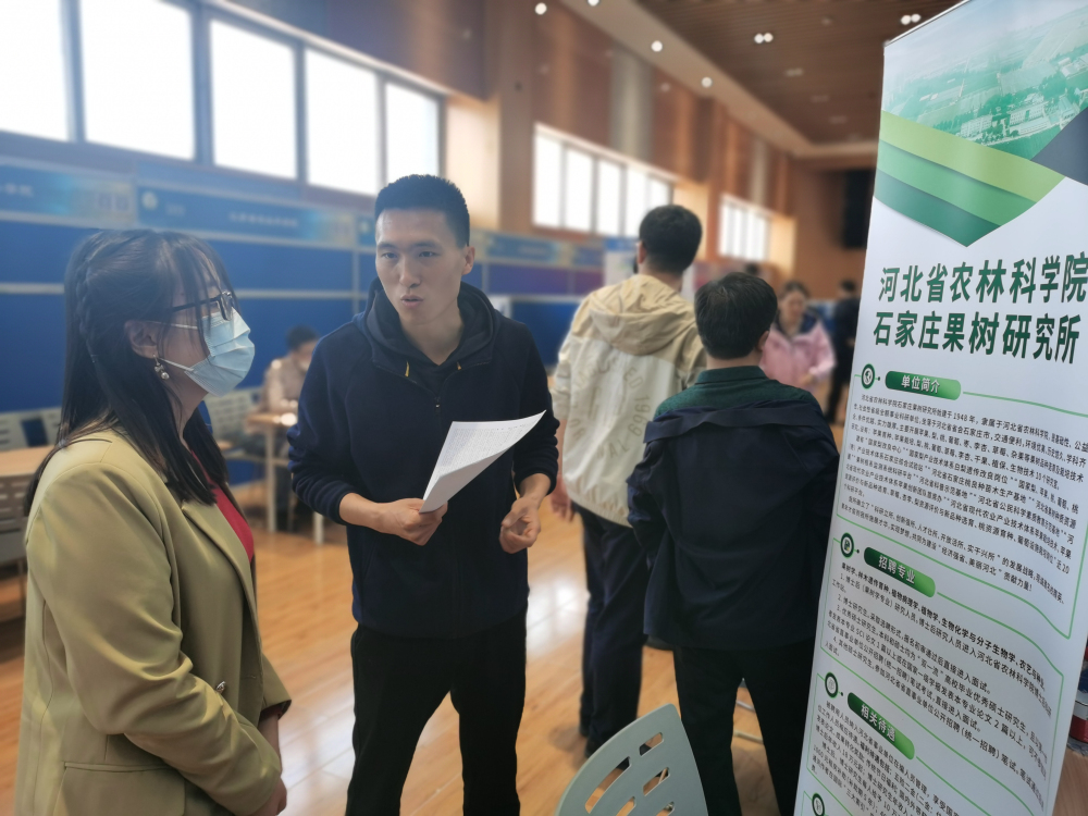 為持續(xù)做好人才引進工作,推進人才強所戰(zhàn)略,2023年4月26日,黨總支書記褚鳳杰帶隊參加了在中國農(nóng)業(yè)大學(xué)舉行的“第八屆全國農(nóng)業(yè)高校、科研院所高層次人才引進洽談會”。此次洽談會吸引了來自中國農(nóng)業(yè)大學(xué)園藝學(xué)院、農(nóng)學(xué)院、植物保護學(xué)院等學(xué)院的應(yīng)屆碩博畢業(yè)生來到石家莊果樹研究所展位咨詢。人事科工作人員與學(xué)生們進行了交流洽談,就學(xué)生關(guān)心、關(guān)注的問題一一進行了解答。經(jīng)過篩選簡歷、綜合考量,后續(xù)研究所會重點對與本所發(fā)展需求契合度較高的學(xué)生保持聯(lián)系,真誠歡迎高層次人才加入研究所,助力研究所發(fā)展。