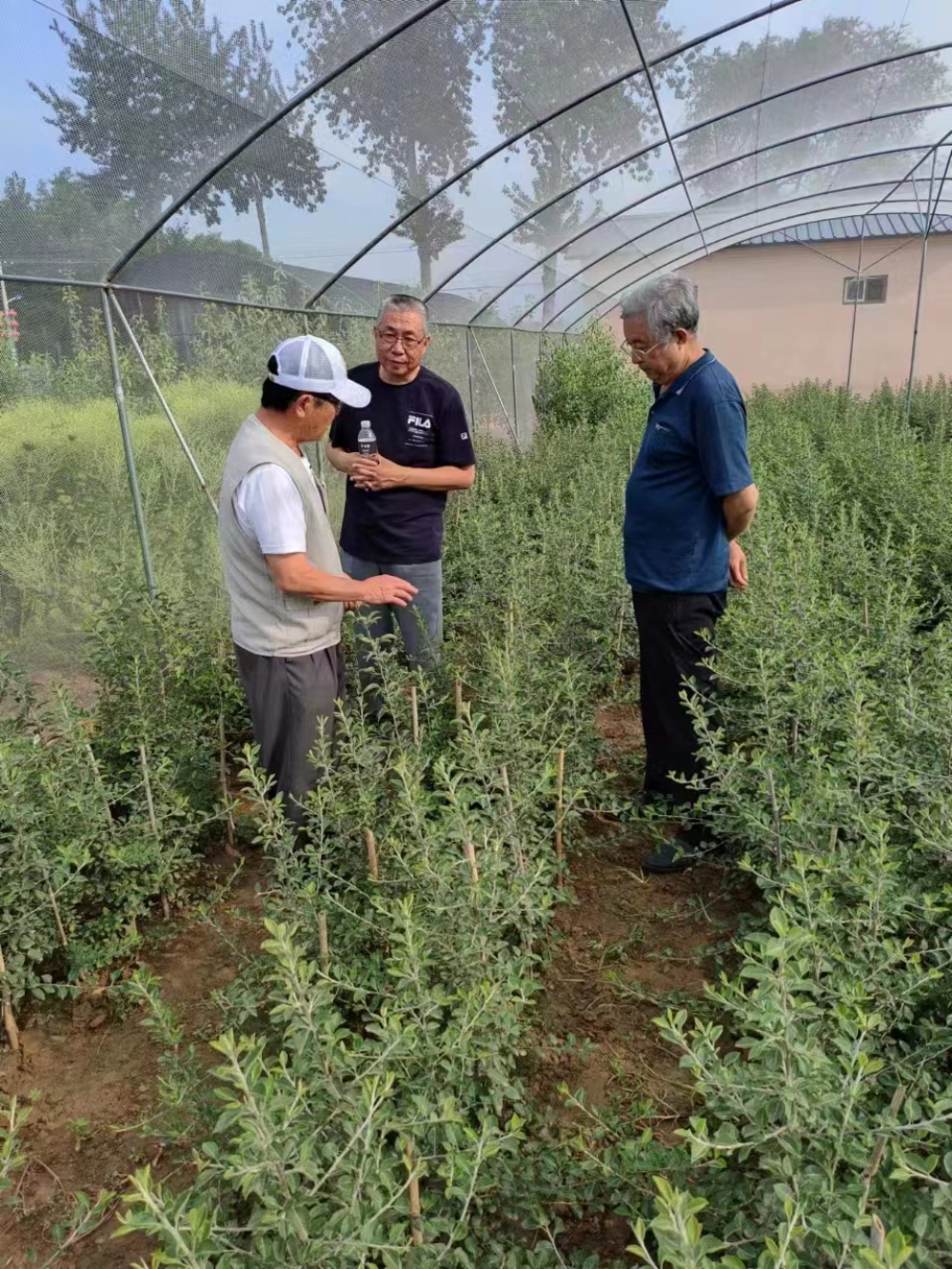 隨后伴野教授重點(diǎn)觀看了梨嫩枝扦插棚,表示扦插棚內(nèi)的溫濕度控制較好,并對(duì)扦插基質(zhì)、扦插材料選擇和扦插深度進(jìn)行了指導(dǎo)。