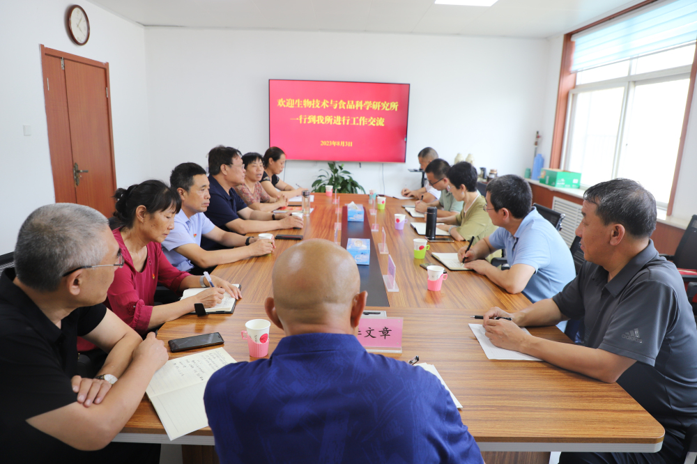 2023年8月3日,生物技術(shù)與食品科學(xué)研究所黨總支書記陳保華一行到我開展工作交流。調(diào)研座談由我所黨總支書記褚鳳杰主持,褚鳳杰對陳保華一行的到來表示歡迎,介紹了研究所黨總支情況及研究所在科技創(chuàng)新、科技服務(wù)、人才建設(shè)、制度管理等方面基本情況。雙方就黨建、科研、管理等工作進行了交流,圍繞“結(jié)合科研抓黨建,抓好黨建促科研”工作方法展開探討。陳保華表示,此次座談收獲頗豐,今后會加強與石家莊果樹研究所的溝通交流,尋找合作機會,共同進步。會后,陳保華一行參觀了石家莊果樹研究所科技展廳。