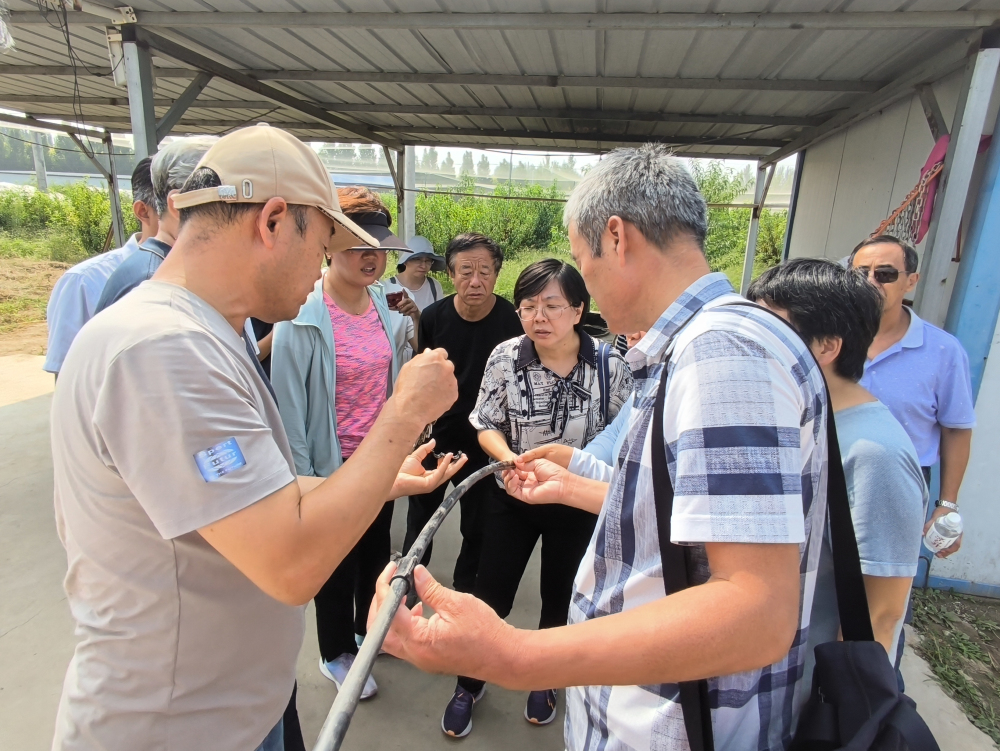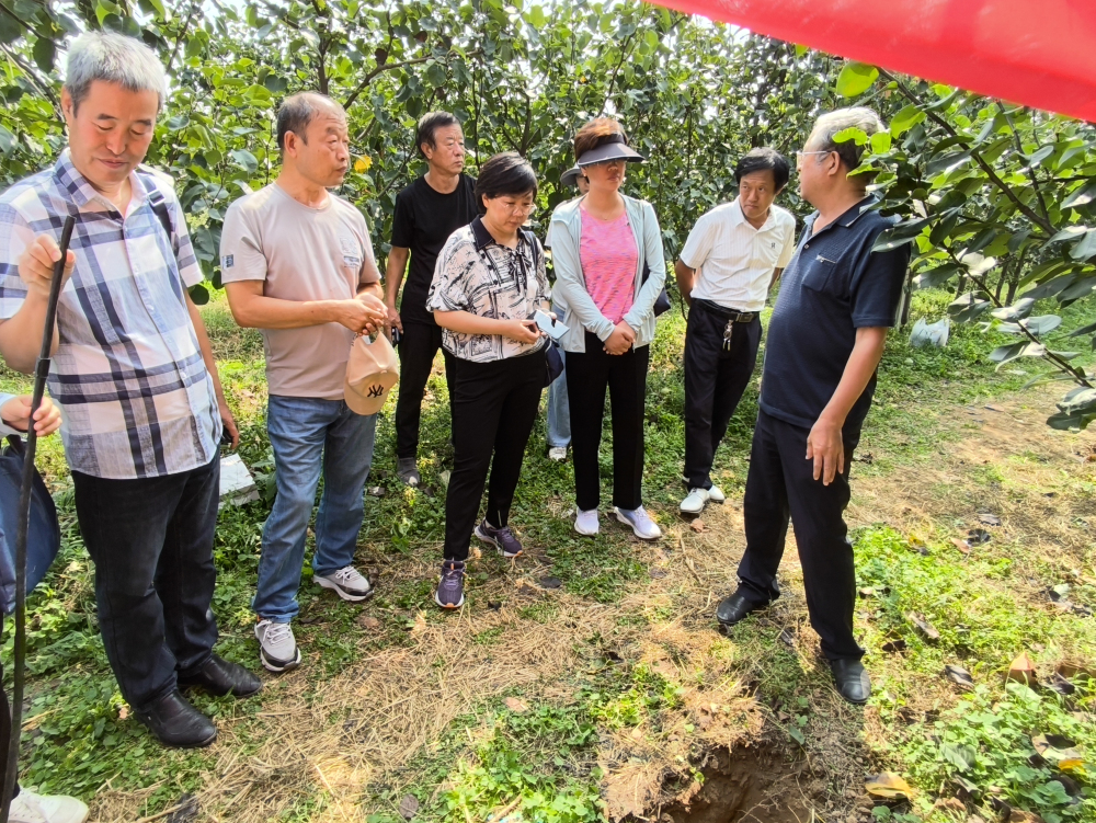 2023年9月6日,由蘋果栽培研究室承擔的河北省科技廳重點研發計劃“滲灌關鍵技術與配套設備研發與應用”在衡水市阜城縣進行了田間檢測。現場檢測組由河北省林業和草原科學研究院、衡水市農科院、泊頭市林業局相關專家組成。河北省科學技術廳農村科技處副處長龐海慧、河北省農林科學院科研管理部李耀發副部長等相關部門領導組織并參加檢測。