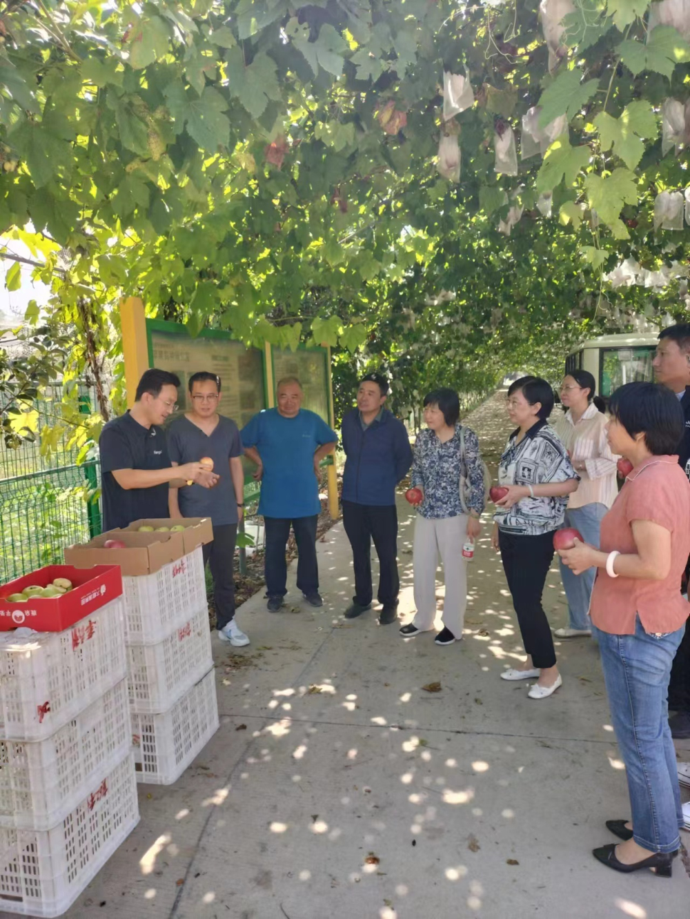 2023年9月22日,河北省科學技術廳農村處趙學軍處長、龐海慧副處長,到我所調研指導工作,院科研部負責同志、我所領導班子陪同調研。趙學軍一行首先視察根系觀測平臺,聽取了試驗設計、根系觀測內容和數據獲取和分析利用情況的匯報。隨后,分別到蘋果栽培、蘋果育種、草莓、梨、李杏、桃、葡萄、干果研究室試驗地進行現場參觀,各研究室主任分別介紹了承擔項目、保存資源、育種目標、培育品種、創新技術及當前的主要育種方向等。果樹育種是石家莊果樹研究所的學科優勢,利益于省科技政策的持續支持,自育的黃冠(梨)品種在全國推廣面積達150萬畝以上,冀秀(梨)、金荷(杏)、冀九(草莓)等優良品種推廣潛力巨大。趙學軍對我所的果樹育種工作給予了肯定,并就果樹資源保存、突破性新品種選育、品種轉化等工作提出了良好建議。