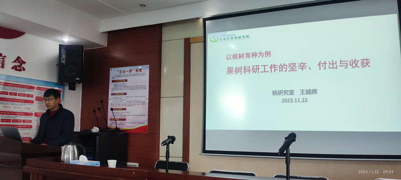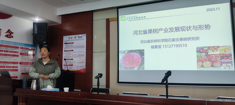 馬之勝研究員介紹了科研及農業科研的特點,強調了科研人員應掌握的一些基本功及常用的科研思維方法;徐國良研究員分享了從事科技服務的一些經歷和心得體會,表示下基層得做到腳勤、嘴勤、眼勤、手勤;褚鳳杰書記結合石果所發展歷程,講述了馬希滿、劉承晏、肖海峰、周志芳等研究所老一輩科學家的故事經歷,令人動容;鄢新民副所長從精準定位、確立目標、調查研究、分析總結等方面進行了職業規劃和職業操守指導,給出了一些意見和建議;王越輝研究員詳細講解了桃育種的整體流程,指出育種目標來源于產業需求,進行產業調研十分必要;楊素苗副研究員對河北省果樹產業發展現狀與形勢進行了介紹,并分享了一些工作和生活中的感悟體會。