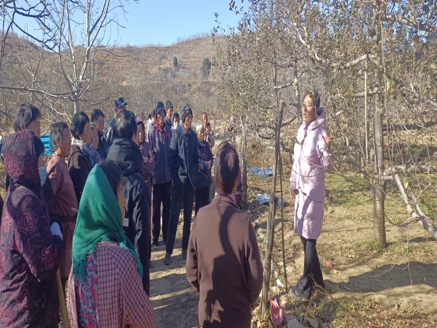楊素苗副研究員就冬季清園重要性、土肥水管理、高光效樹體改造及修剪等技術要點進行系統(tǒng)講解和現(xiàn)場示范,將先進的果園管理方法、科學的發(fā)展理念、高效的經(jīng)營模式手把手傳播給農(nóng)戶,幫助宋家莊果農(nóng)全面掌握農(nóng)業(yè)基礎知識,提升了蘋果管理技能。此次培訓工作,將有效促進農(nóng)戶進一步實現(xiàn)穩(wěn)產(chǎn)、提質(zhì)、增收,助推我省蘋果產(chǎn)業(yè)綠色高質(zhì)量發(fā)展。