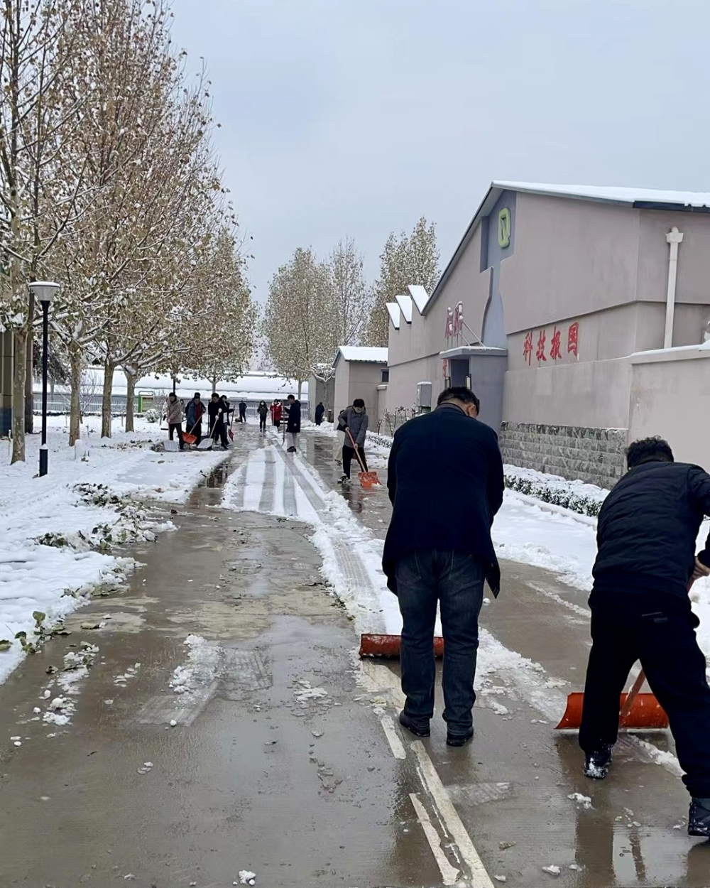 為確保道路通暢和干部職工出行方便,2023年12月11日上午,我所組織開展了清掃積雪活動,全所共計50余人參加。廣大黨員們充分發(fā)揮模范帶頭作用,以飽滿的熱情帶動大家積極參與到掃雪活動中來。活動如火如荼,寒冷的天氣阻擋不了大家勞動的熱情,銀白的雪花映襯出了大家臉上的笑容,一個個忙碌的身影齊心協(xié)力、干勁十足,大伙兒拿著掃雪鏟不畏嚴(yán)寒、齊頭并進(jìn),對辦公區(qū)和家屬區(qū)人行道、車行道上的積雪進(jìn)行了清理。通過此次清掃積雪活動,不僅使大家出行安全便捷,更提高了全體職工團(tuán)結(jié)協(xié)作的凝聚力,共同營造了干凈整潔的工作環(huán)境。