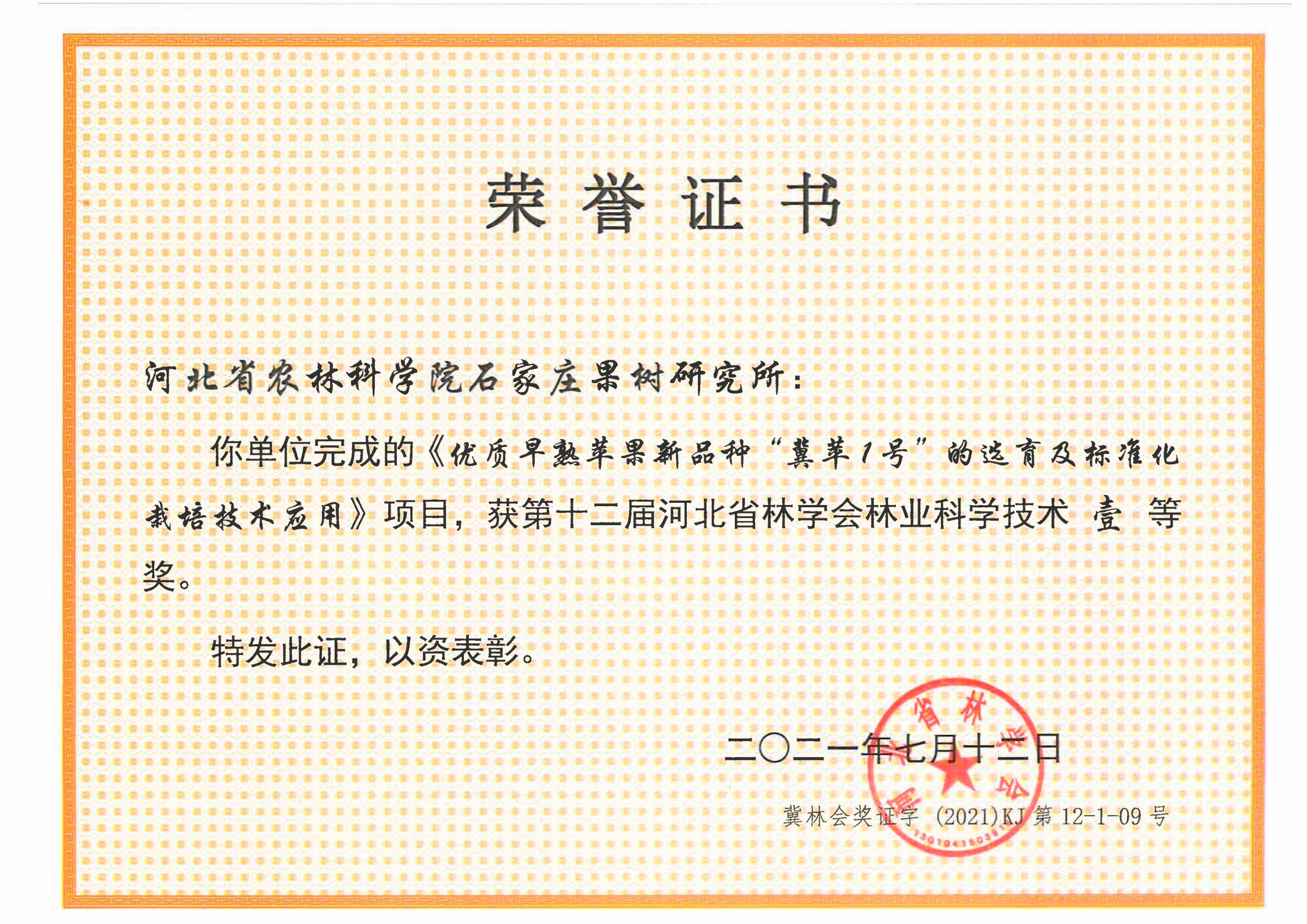 優質早熟蘋果新品種“冀蘋1號”的選育及標準化栽培技術應用