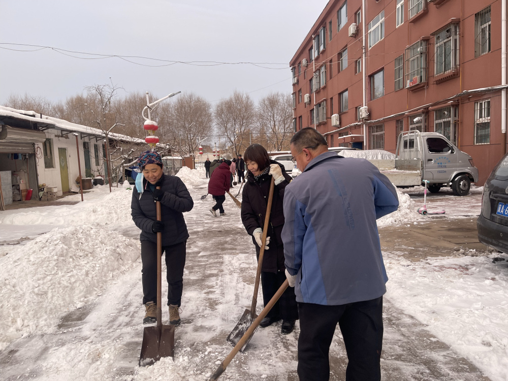 黨員干部們手持鐵鍬、掃帚等工具,在園區的主次道路、各自分包路段、“雙報到”生活小區等場所清掃積雪,不畏嚴寒、干勁十足。同時也帶動了小區居民積極參與到清雪除冰志愿服務活動中,一個個忙碌的身影在皚皚白雪中構成了一道靚麗的風景線,不少群眾對黨員干部們忙碌的身影投來贊許的目光,紛紛為這支清雪大軍“點贊”。