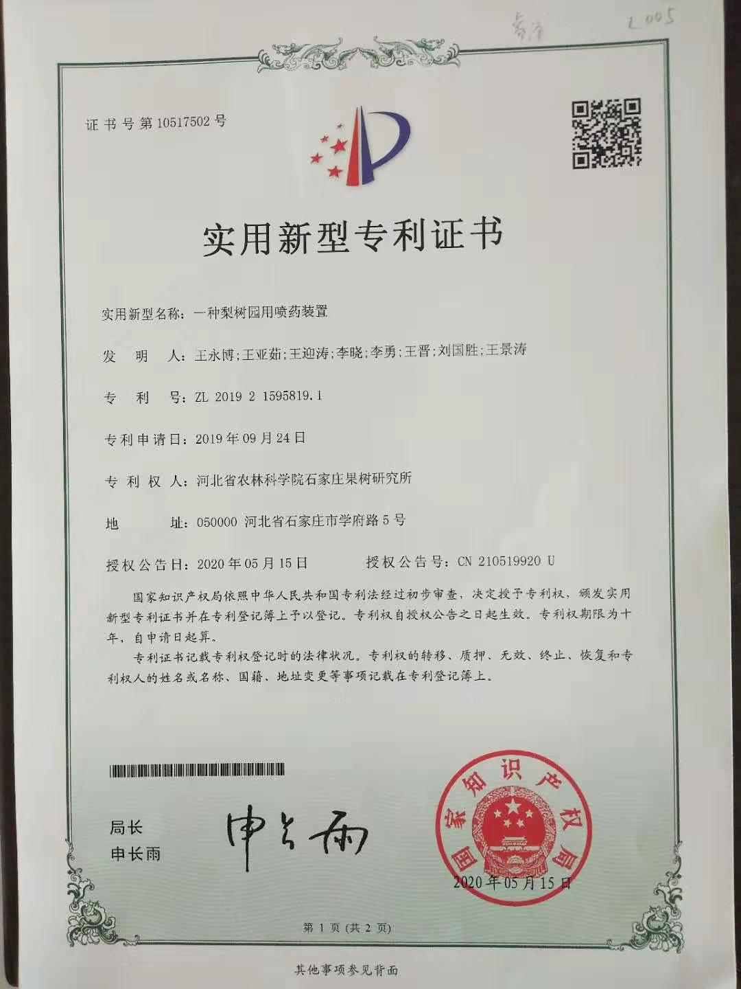 一種梨樹園用噴藥裝置