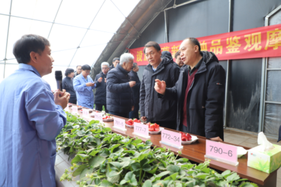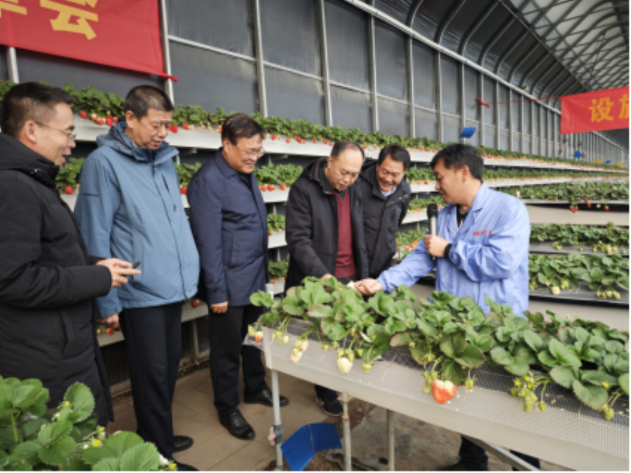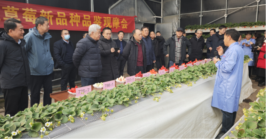 2024年1月17日,院黨組書記、院長張鐵龍,院黨組成員、副院長張建軍、張強、魏紅俠、李巖、王旗一行赴我所設施草莓園區調研考察,并進行工作指導。院機關各部門負責同志陪同調研,石果所領導班子、各研究室主任、草莓團隊成員等30余人參加了此次活動。