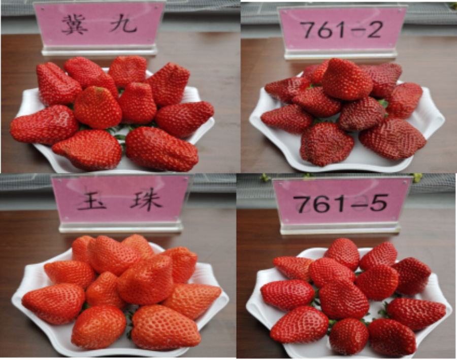 石果所草莓團隊在多年的積累努力下,育成了一批優良品系,主推品種有“冀九”和“冀香”。“冀九”個大、豐產、抗性強,在辛集、昌黎等地表現優異,受到躍鑫合作社、英俠果樹專業合作社及當地莓農的一致好評;“冀香”口感濃郁,果形端正,為四季性品種,在崇禮、淶源一帶表現極佳,現正于云南等地進行適應性試驗,有望在全國范圍進行推廣。另有桔粉色的“玉珠”、深紅色的“751-10”等一批后備優系整裝待推。在基地建設方面,注重發展冷涼區育苗基地,提高種苗質量,著眼于建設以鮮食為主的高端設施草莓基地,提高草莓果品質量。同時,草莓團隊注重積極為企業、合作社、莓農做好科技服務,及時響應群眾需求,切實解決企業農民在生產中遇到的難題。