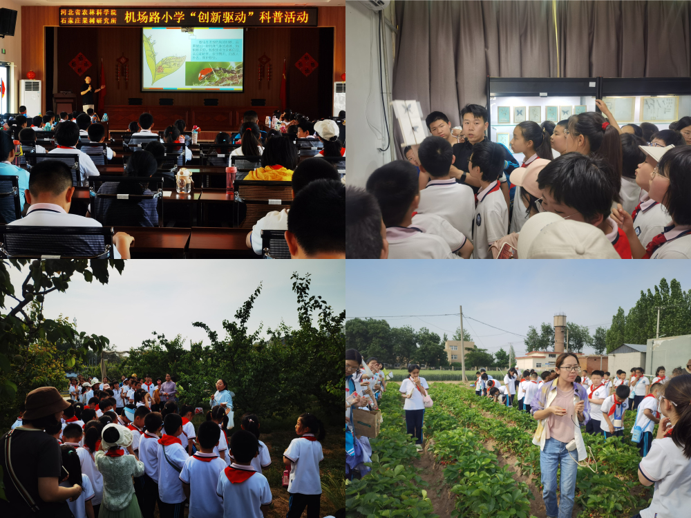 在我所標本室,植保科研人員詳細介紹了各種昆蟲標本的制作方法,并現場給小朋友們做了示范,以“聰明的螞蟻”為題科普了螞蟻的生活智慧;在杏李、草莓示范園,跟隨科研人員的講解,師生們了解了杏李、草莓在中國的栽培歷史、起源及發展現狀、目前生產上的主栽品種、不同樹形栽培特點、栽培新技術和新模式等知識,讓學生們更加直觀了解果樹栽培知識。
