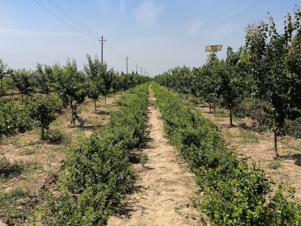 示范基地負責人劉志琨副研究員介紹了基地的建設情況。該基地占地370余畝,通過引進我所自育新品種,極早熟品種的金荷、金宇,早熟的冀早紅,很好解決了鮮食杏的早期供應。冀早紅是通過雜交選育出的新品種,果實成熟期在5月底-6月初,果實陽面片紅,外觀靚麗色澤鮮艷,果實內在品質優良,2021年通過省級品種審定。基地采用了杏樹間作金銀花的創新模式。這不僅從第一年就為基地帶來畝千元以上的附加收入,而且優化了土地資源配置。金銀花和杏樹都是耐旱耐瘠的植物,管理成本低。基于基地土壤貧瘠、用藥不規范等問題,專家提出通過對基地增施有機肥,增加有機質,來改善土壤結構;實施病蟲害精準防控,在保證產量的同時減少了環境污染。